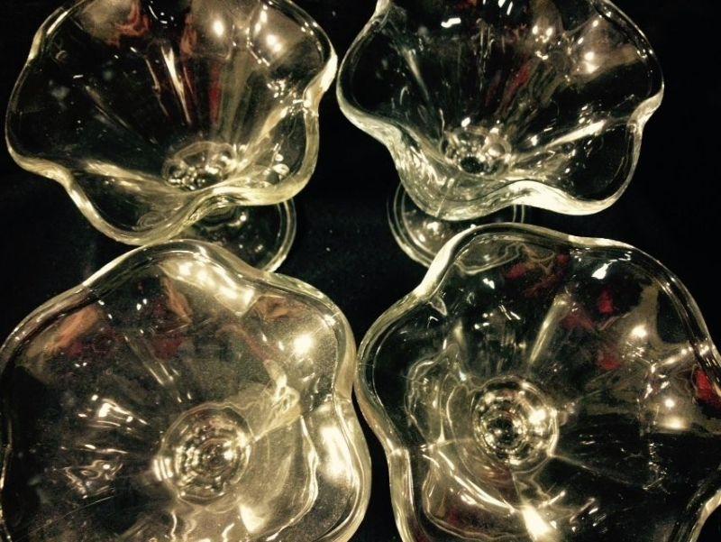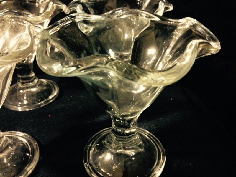 Six Vintage Clear Glass Made in Italy Scalloped Ice Cream Dishes,