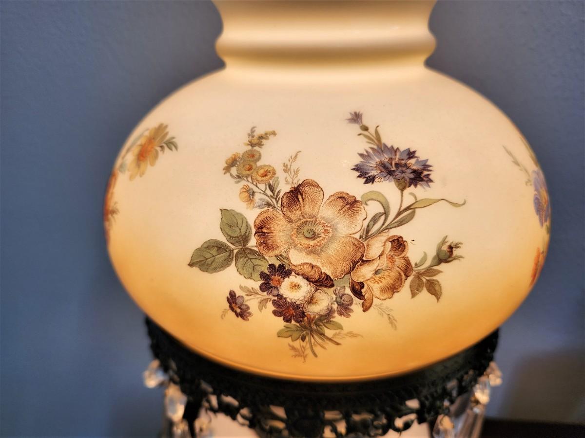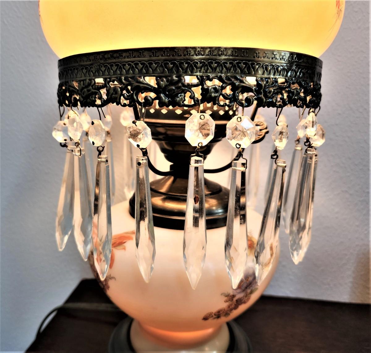 This vintagy table lamp is graced with 20 long crystals - 19" tall - 2-way light (top/bottom). Has a certificate with it. Good working condition.