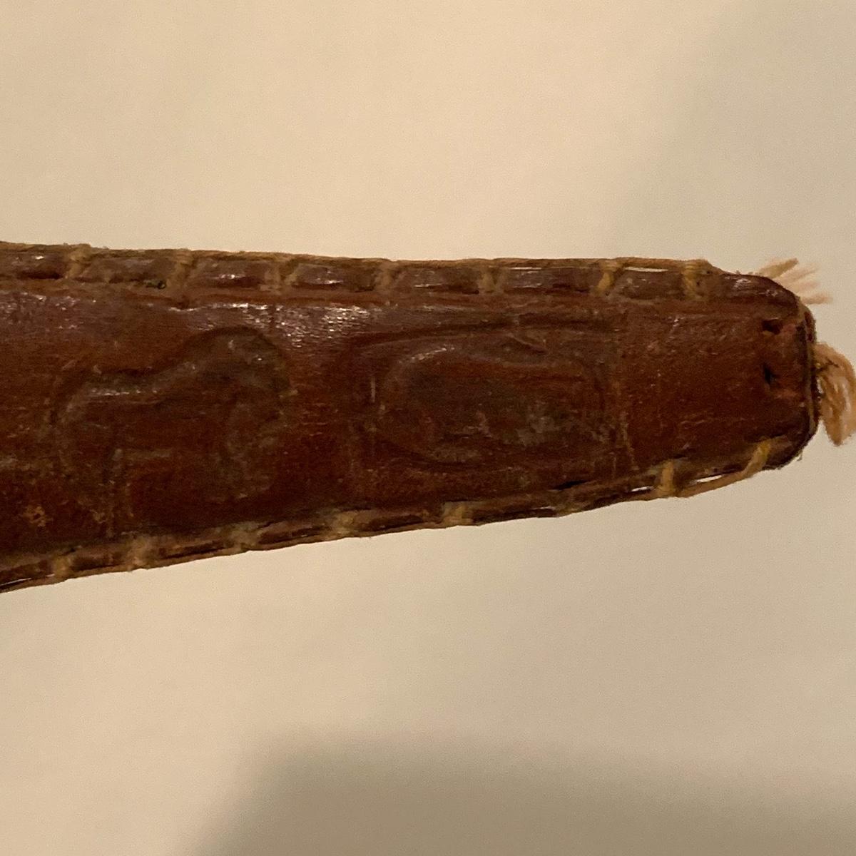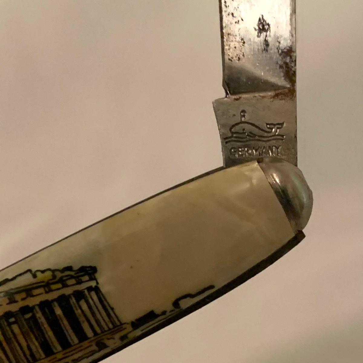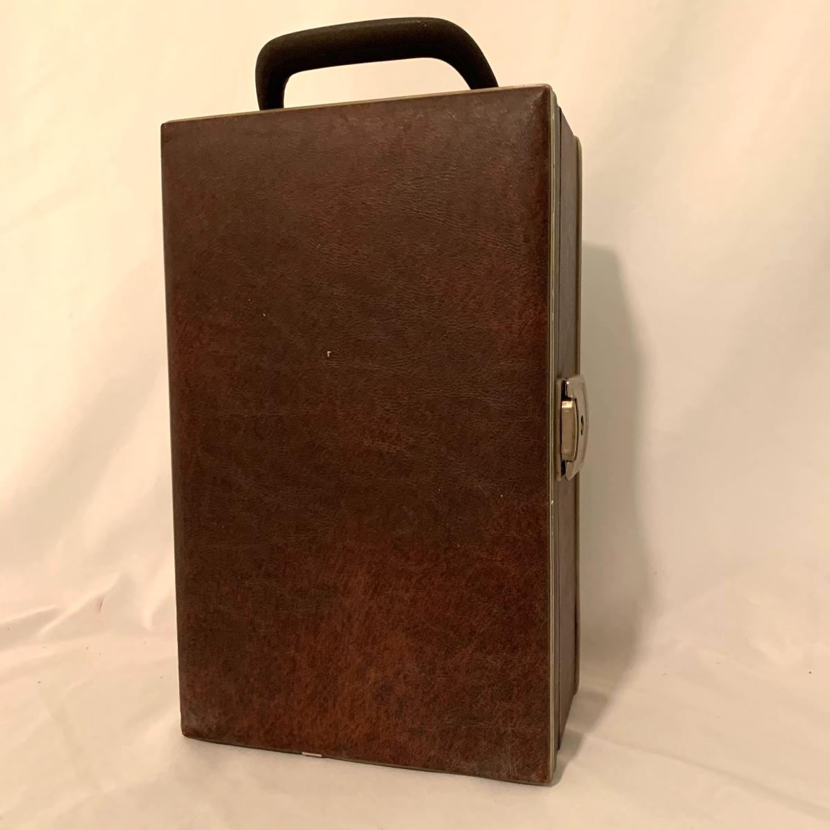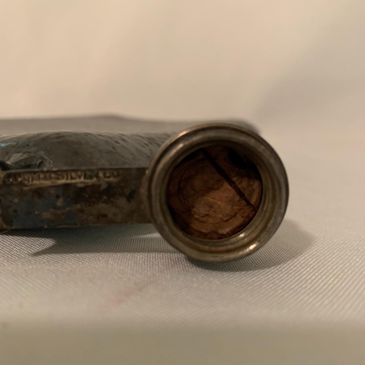 Just in time for Fathers Day, any item in this lot would be a gift cherished by the men in your life (or woman!). A vintage portable travel bar, the Original Trav-L Bar by Ever Wear, comes in a case with a latch and handle for convenient transport to your friend’s party or a picnic. It comes with a stirring spoon, a bottle opener, two metal tumblers, and two metal shot glasses. All it’s missing is your favorite bottle of gin! Or if you want to travel lighter, pour that gin into the vintage metal flask in this collection. It comes with an attached corked flip top lid that screws on. It is imprinted with “Apollo Silver Co”. The lid is dented but functional. There is also a small brass match case, full of matches. It latches and has a little button on the side that opens the lid. Four knives are included. One is in a leather case that says “Mexico”. Three are pocket knives. Two of which have shell handles with Athens Parthenon designs. The metal on the pocket knives is rusted. There is also an iron rifle figurine and an interesting metal whistle with a dragon design. Shipping available.