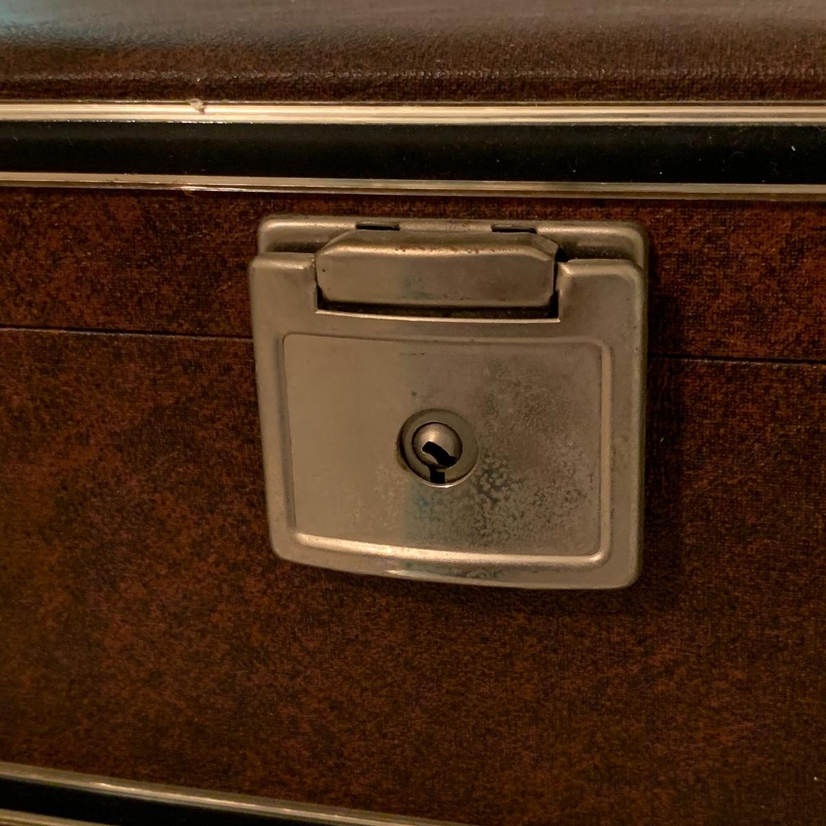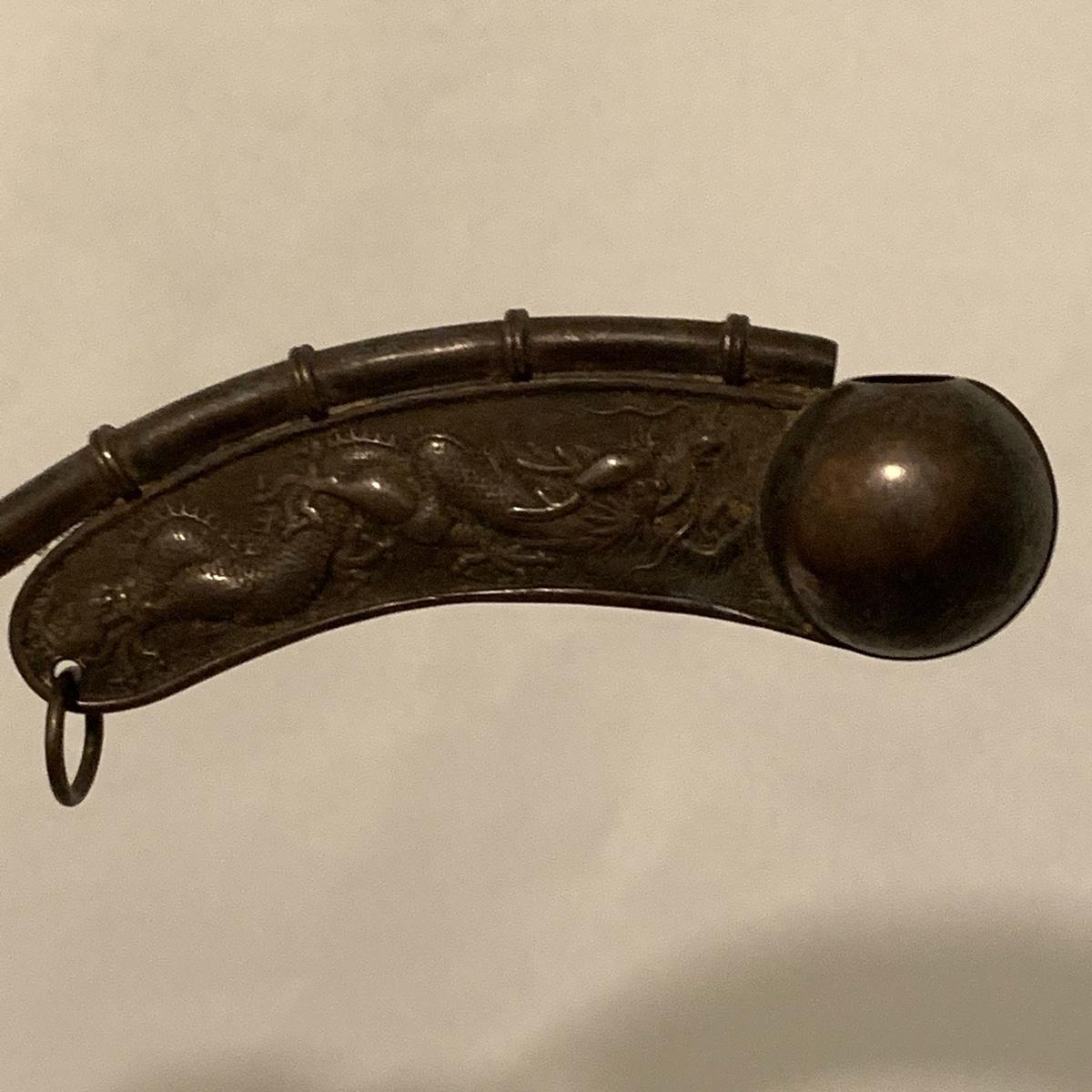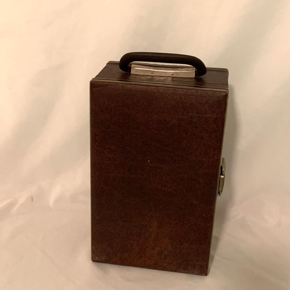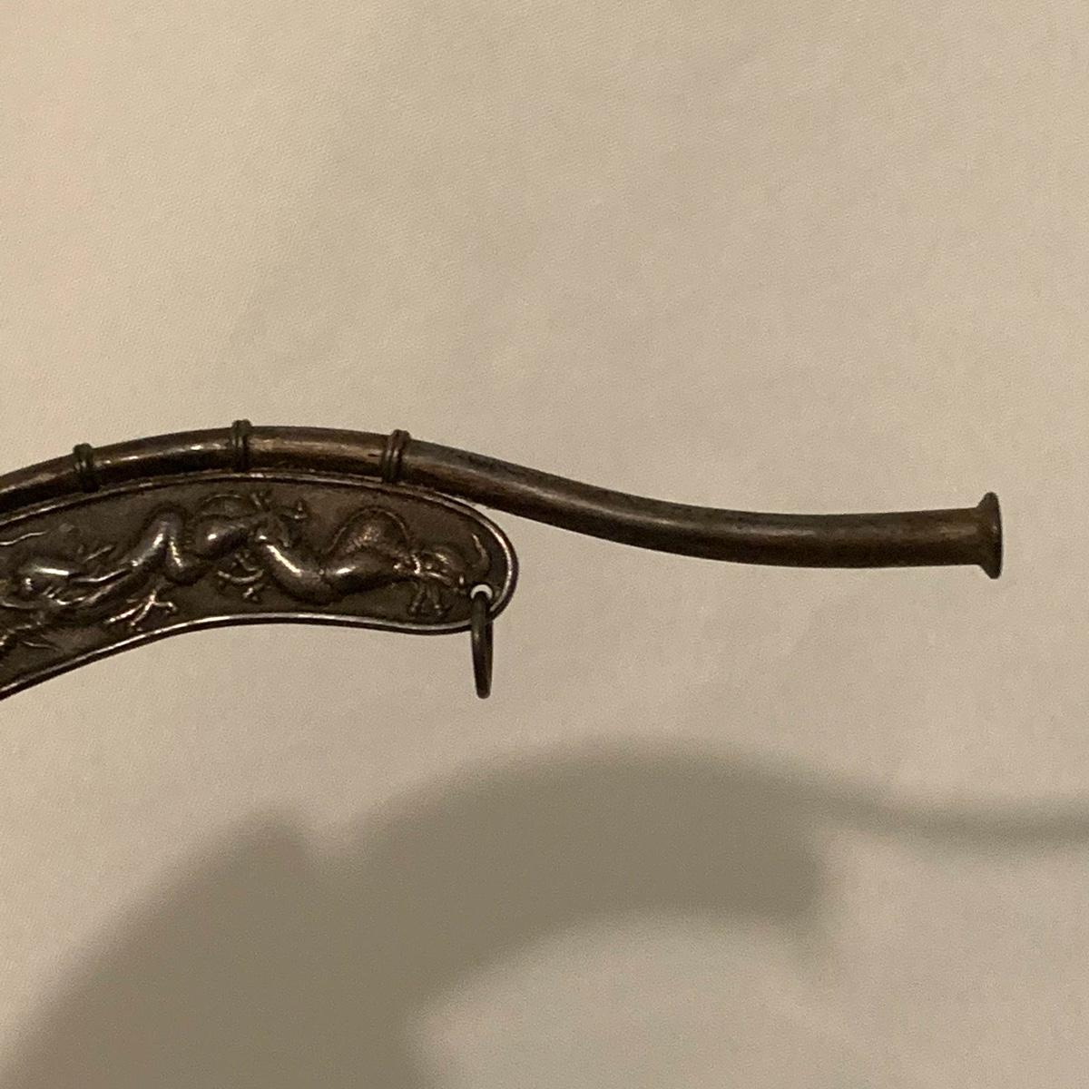 Just in time for Fathers Day, any item in this lot would be a gift cherished by the men in your life (or woman!). A vintage portable travel bar, the Original Trav-L Bar by Ever Wear, comes in a case with a latch and handle for convenient transport to your friend’s party or a picnic. It comes with a stirring spoon, a bottle opener, two metal tumblers, and two metal shot glasses. All it’s missing is your favorite bottle of gin! Or if you want to travel lighter, pour that gin into the vintage metal flask in this collection. It comes with an attached corked flip top lid that screws on. It is imprinted with “Apollo Silver Co”. The lid is dented but functional. There is also a small brass match case, full of matches. It latches and has a little button on the side that opens the lid. Four knives are included. One is in a leather case that says “Mexico”. Three are pocket knives. Two of which have shell handles with Athens Parthenon designs. The metal on the pocket knives is rusted. There is also an iron rifle figurine and an interesting metal whistle with a dragon design. Shipping available.