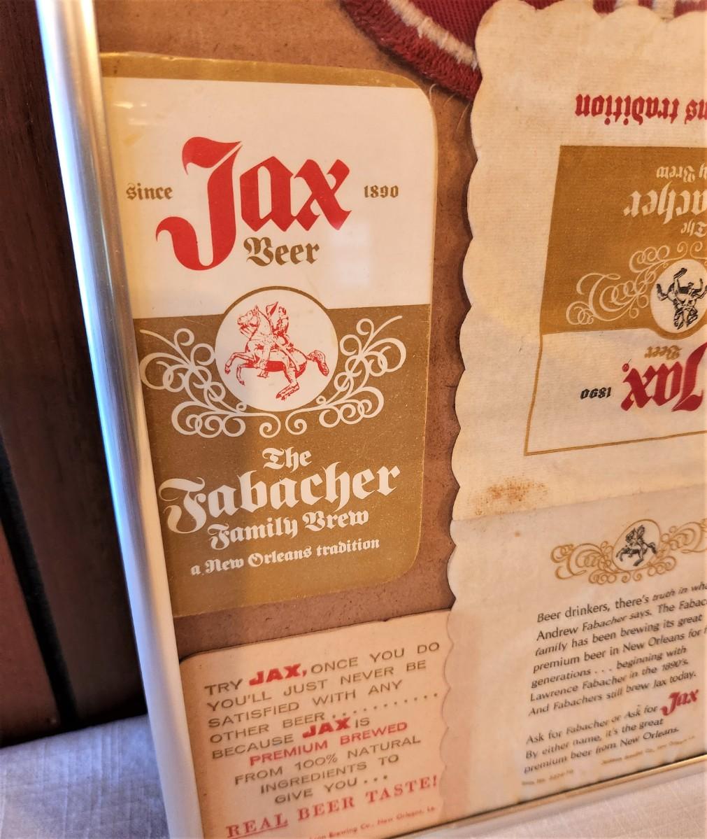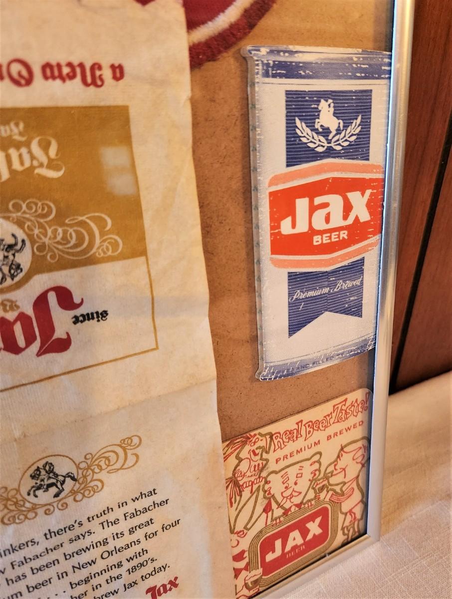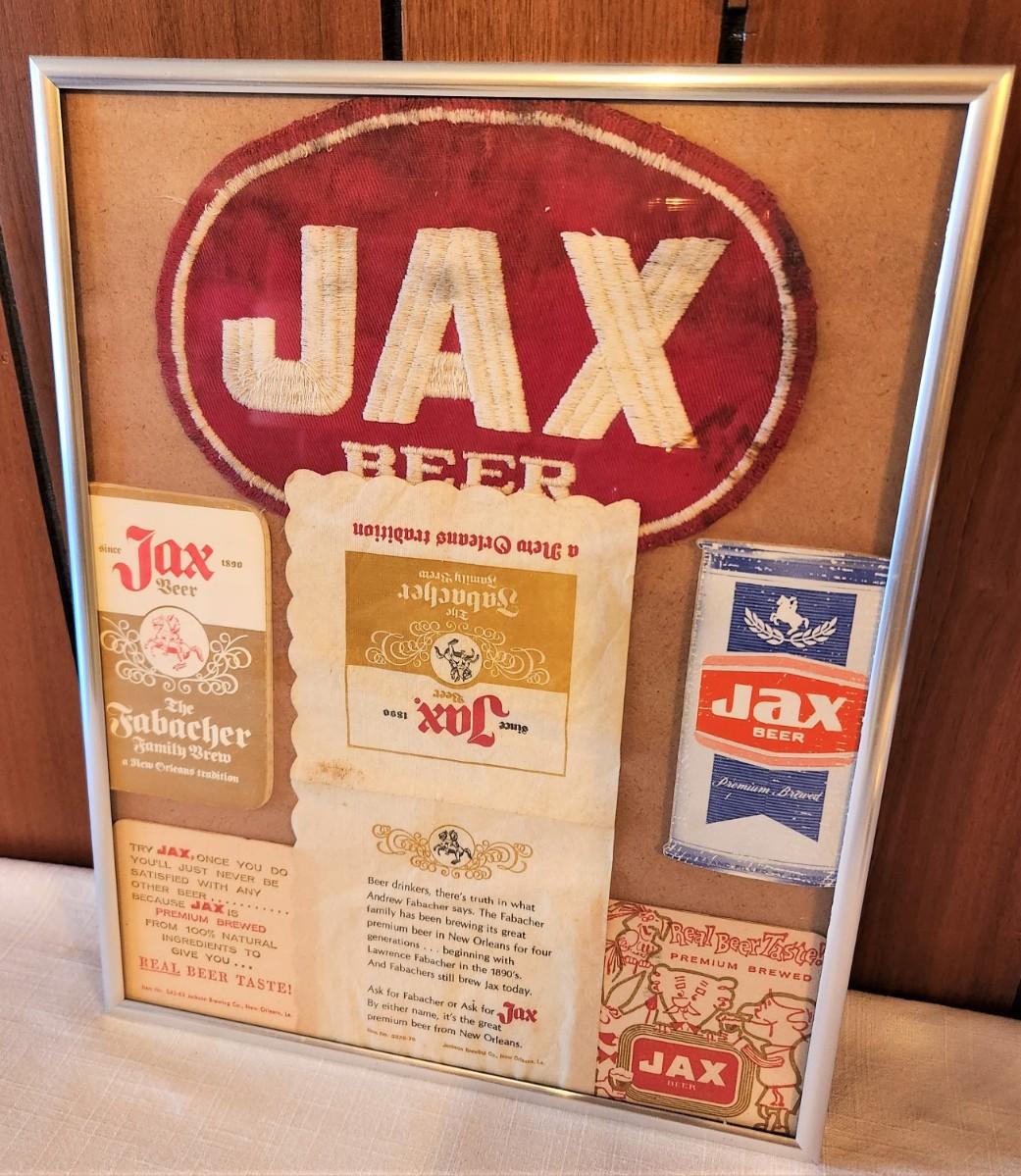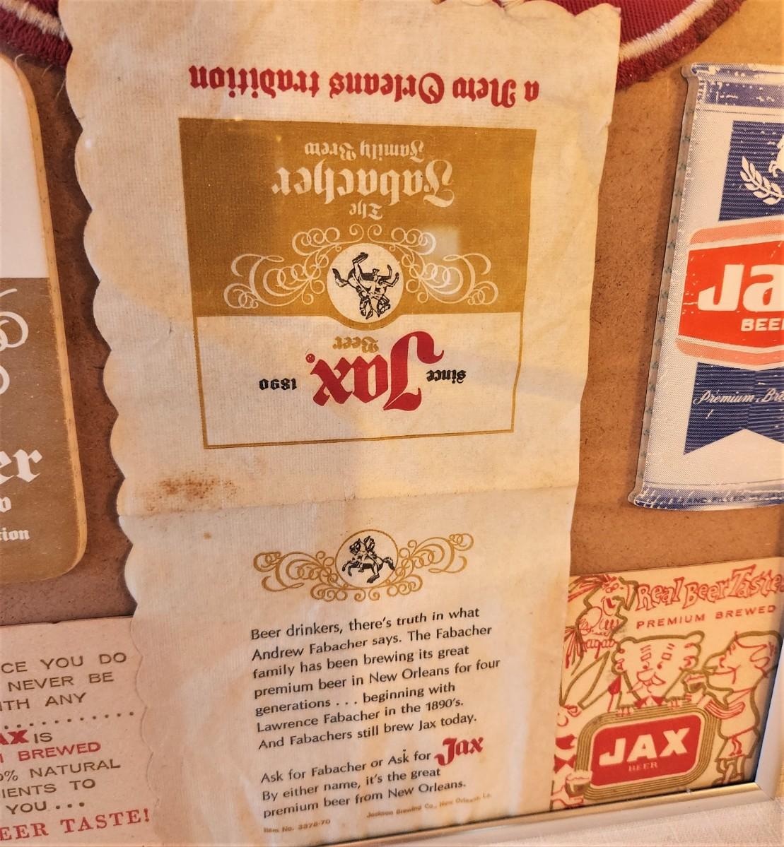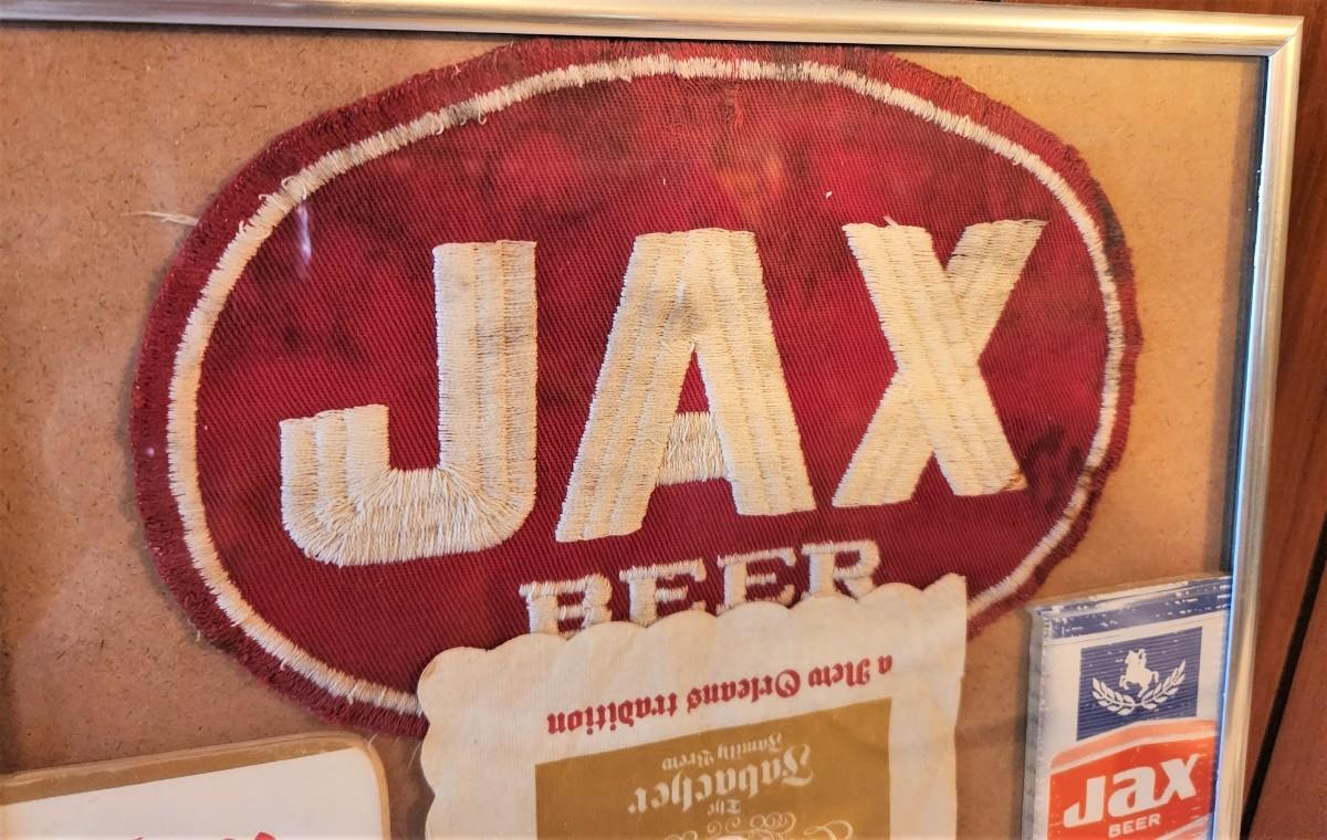 Lot #6  Vintage JAX Beer Lot in Frame - Patch, coasters, notepads