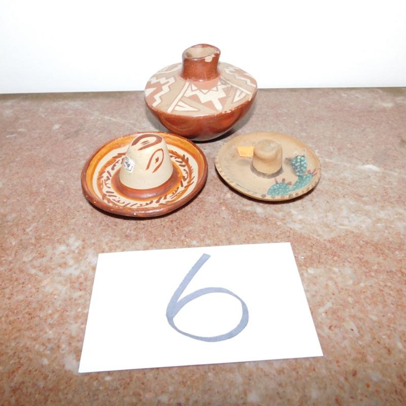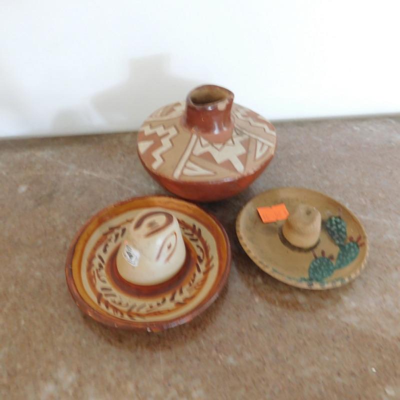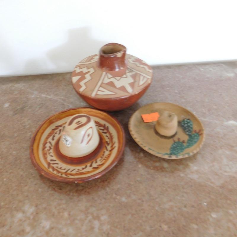 Lot 6 vintage San Juan sees pot and 2 clay sombrero