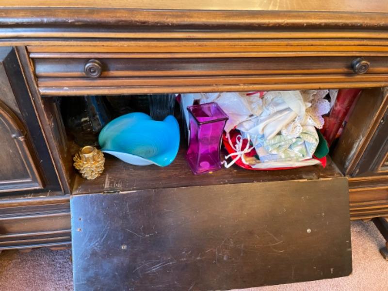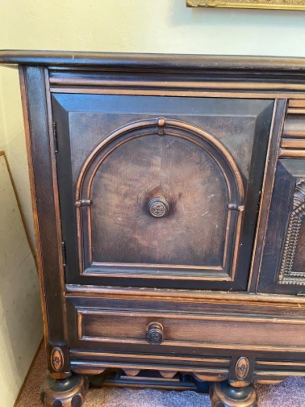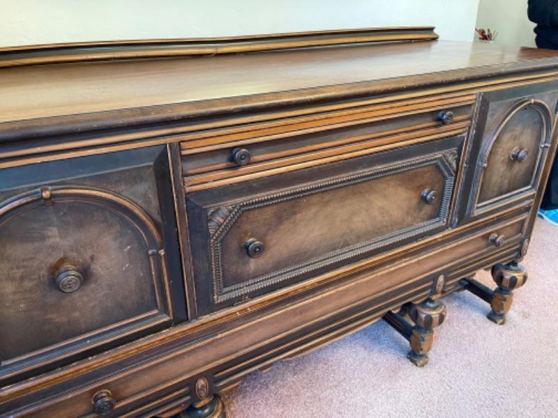 Lot 6. Walnut sideboard, 65”x23”x’37”, two drawers and 3 storage cabinets--$75