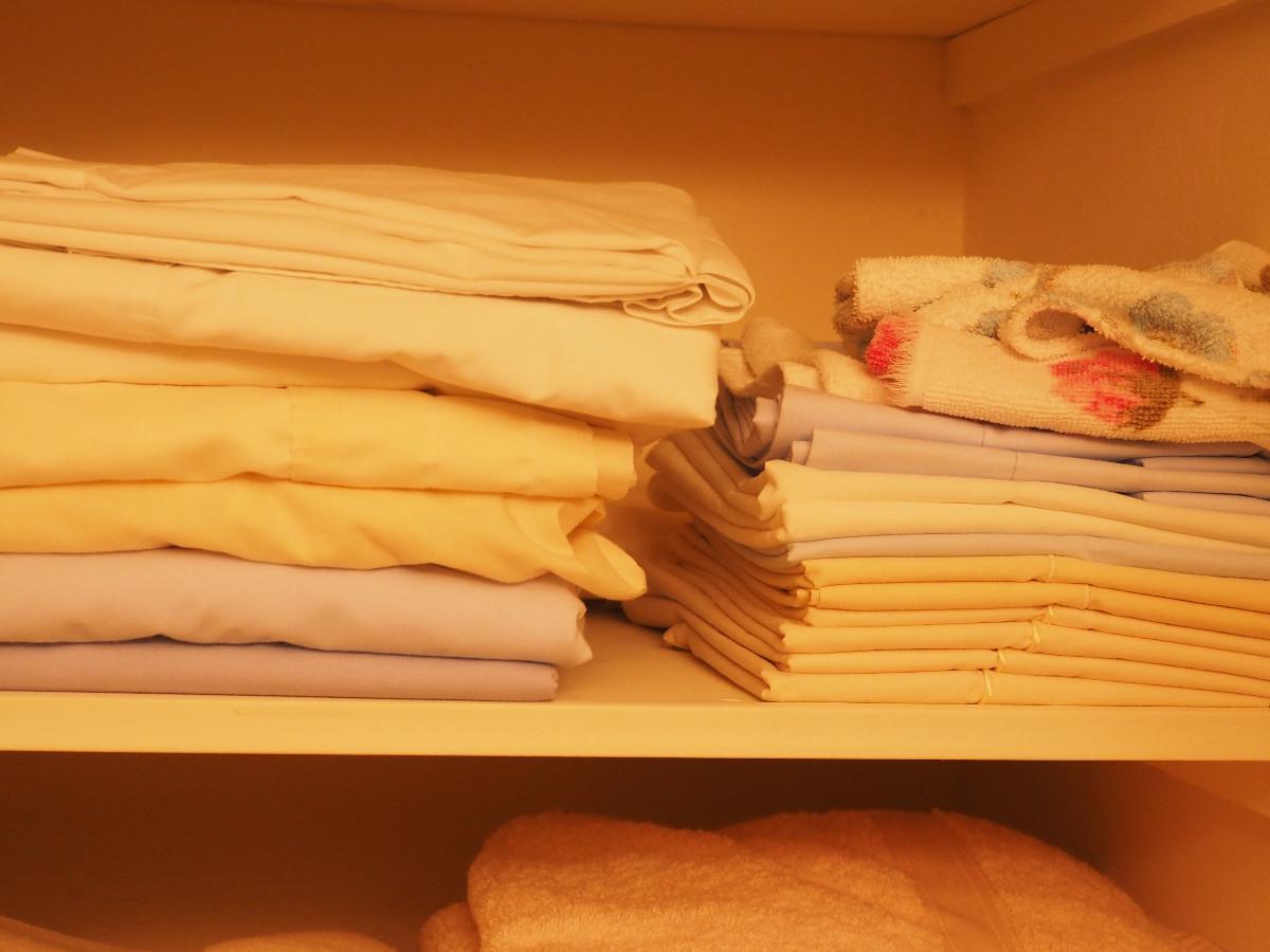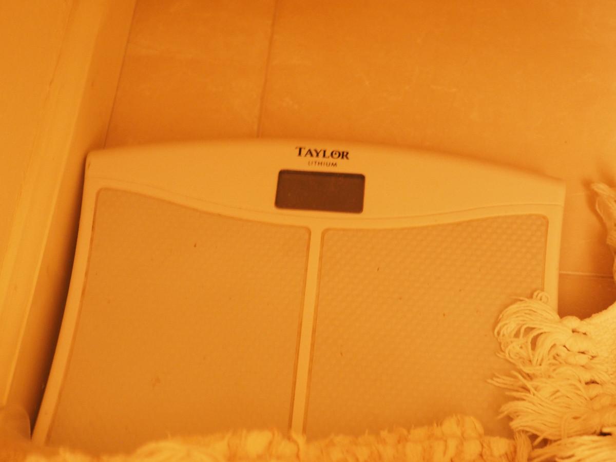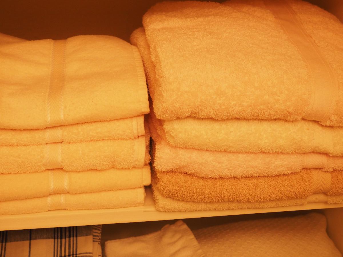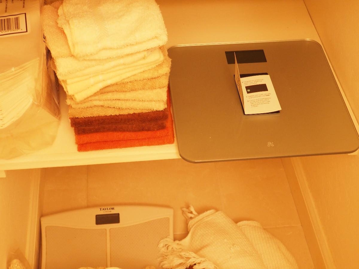 Lot 60 2 digital scales (not tested) and contents of the linen closet in bathroom: Towels, rugs and scales
