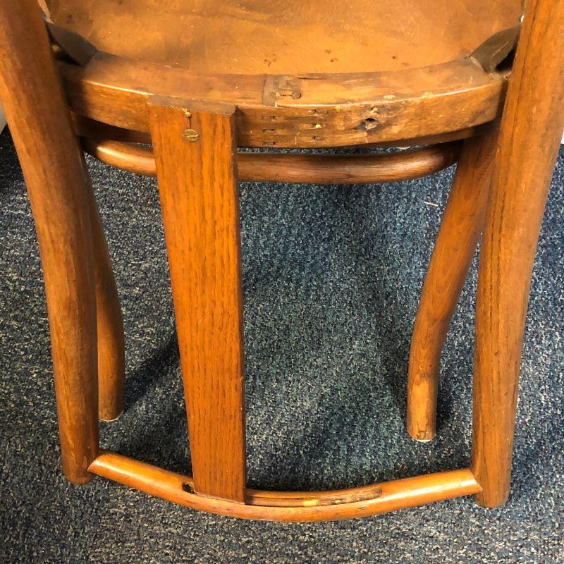 These are in good condition for sitting in (not wobbly). The one is missing a back slat, but it looks to be an easy fix with the way that the chair is made.
