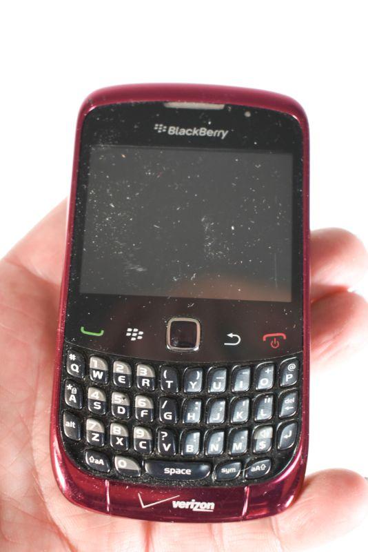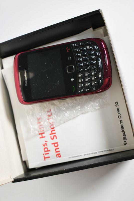 A red Blackberry Curve. Untested. **Please read Terms and Conditions before placing a bid. Pick up is Sunday, December 22 from 11am to 3pm or Monday, December 23 from 4pm-7pm in Mantua, NJ. All sales are final. All sales are as is, where is. Please review all photos. Props are not included. Measurements are approximate.