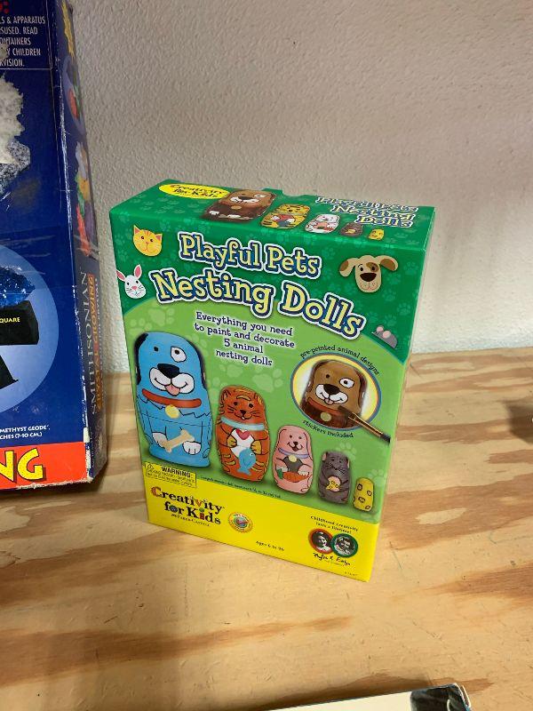 Kits and models: Crystal Growing kit, nesting dolls design your own, OA-4M Skyhawk, A-4M Skyhawk, and Air Fix - 72
