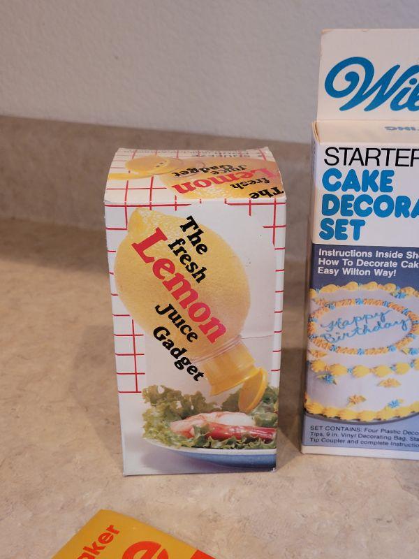 Lot 60: Salad Spinner, New Späetzle Maker, Dressing Cup, Wilton Cake Decorating Set & Lemon Juicer