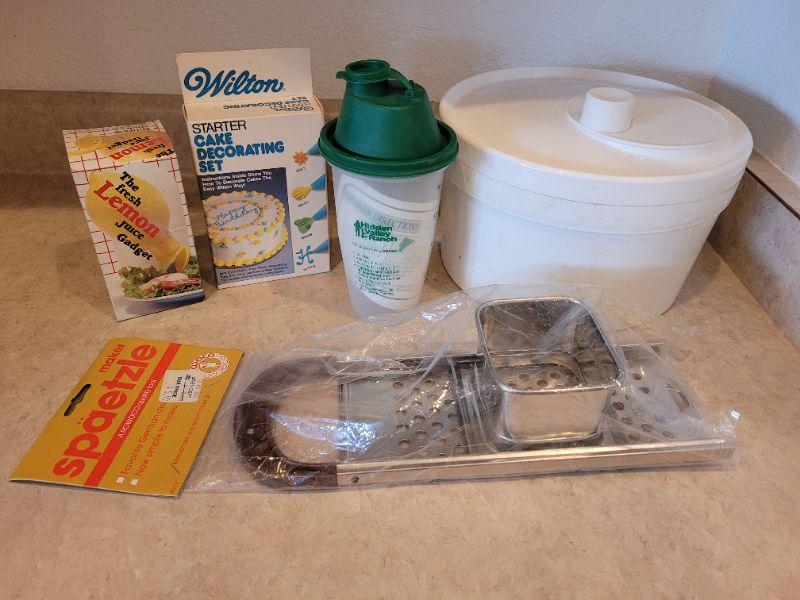 Lot 60: Salad Spinner, New Späetzle Maker, Dressing Cup, Wilton  Cake Decorating Set & Lemon Juicer