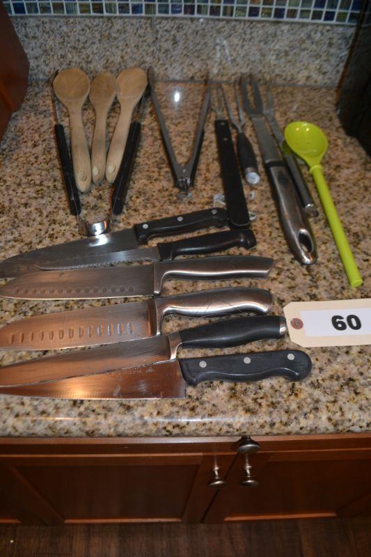LOT 60 KNIVES AND KITCHEN TOOLS