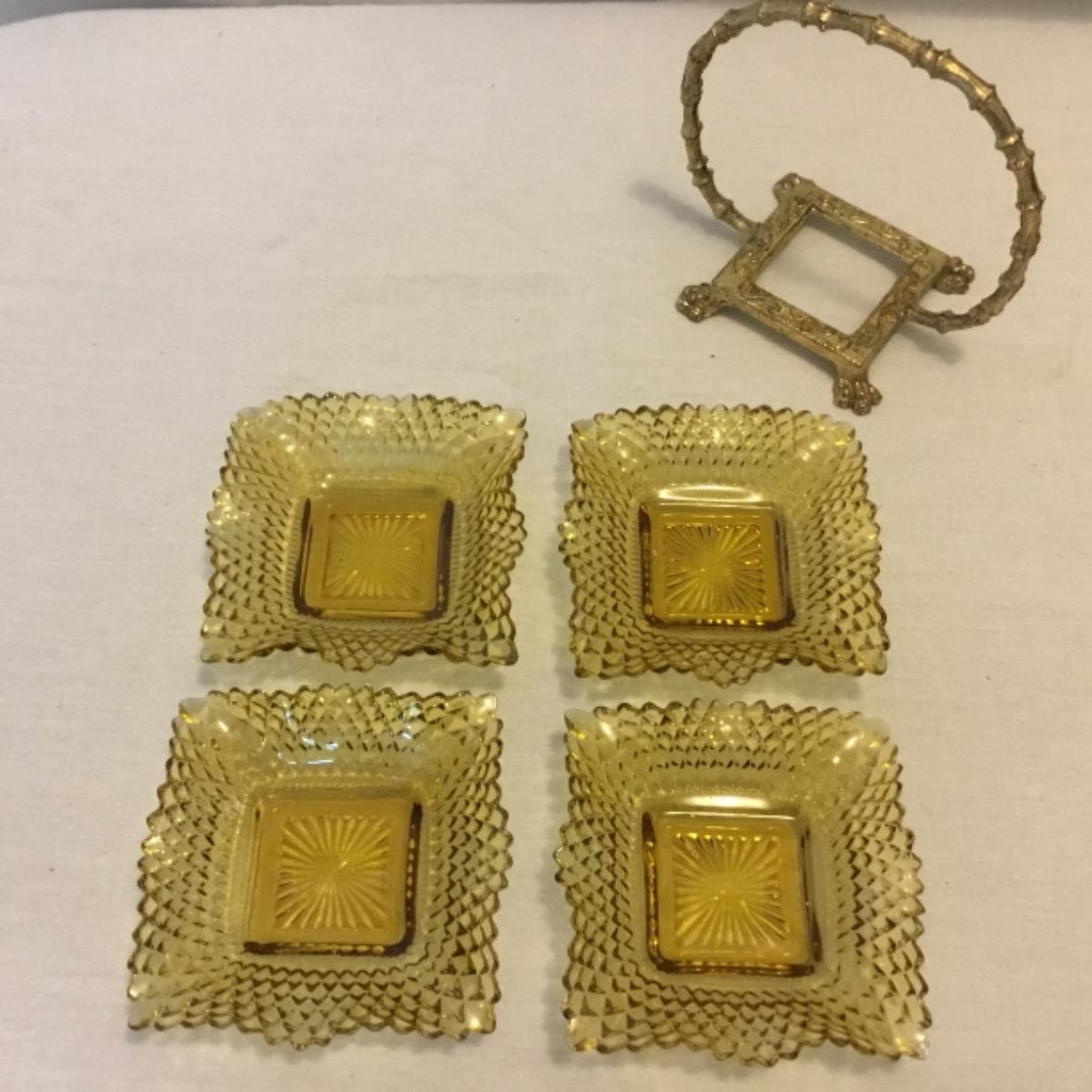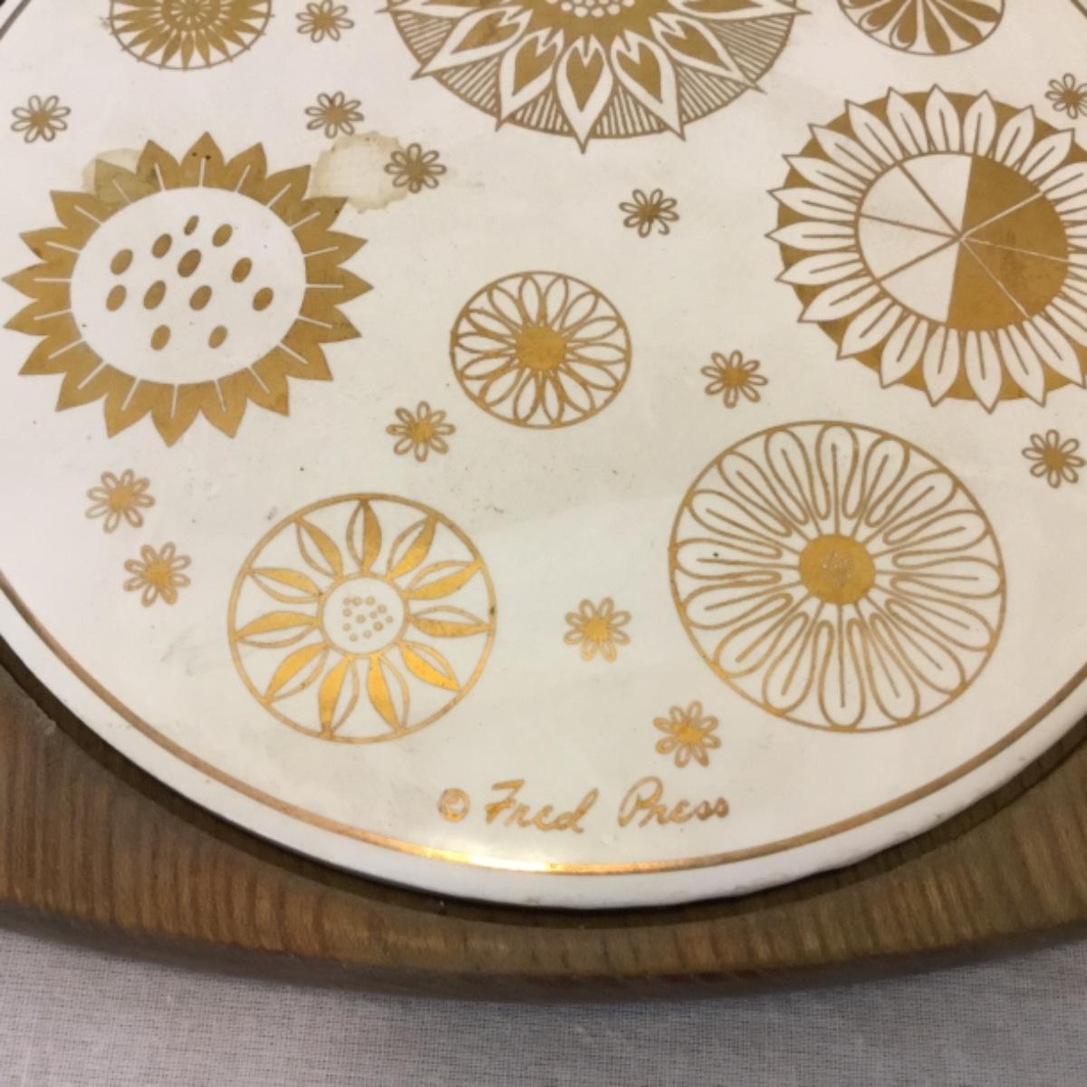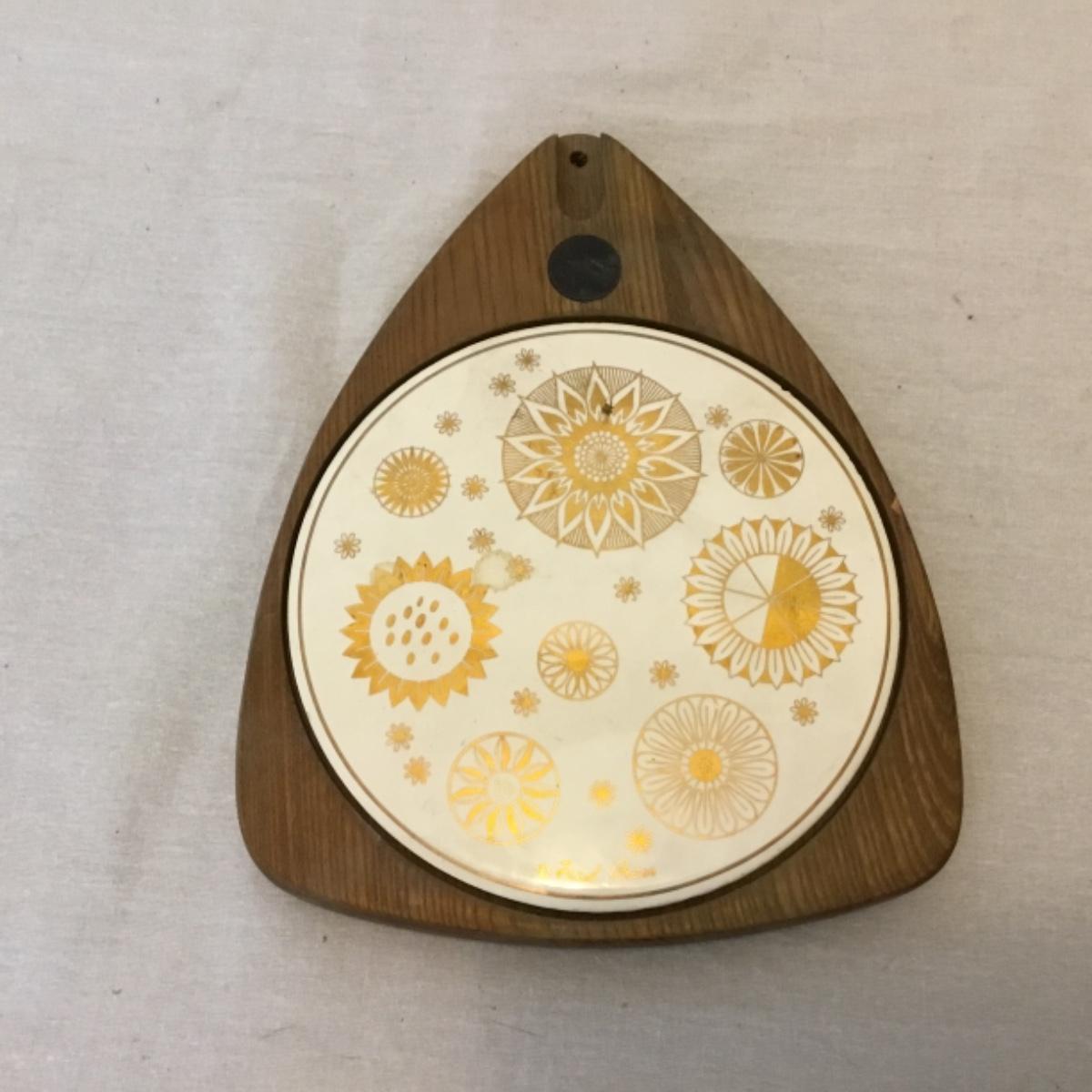 70's era entertainment lot includes cake plate with a diameter of 10". See photos for adorable design and details. Lot also includes an ice bucket, coasters, vintage bottle opener, and pot holder. Additionally includes a knife and a complete carving set in an ornate case. See photos! No shipping