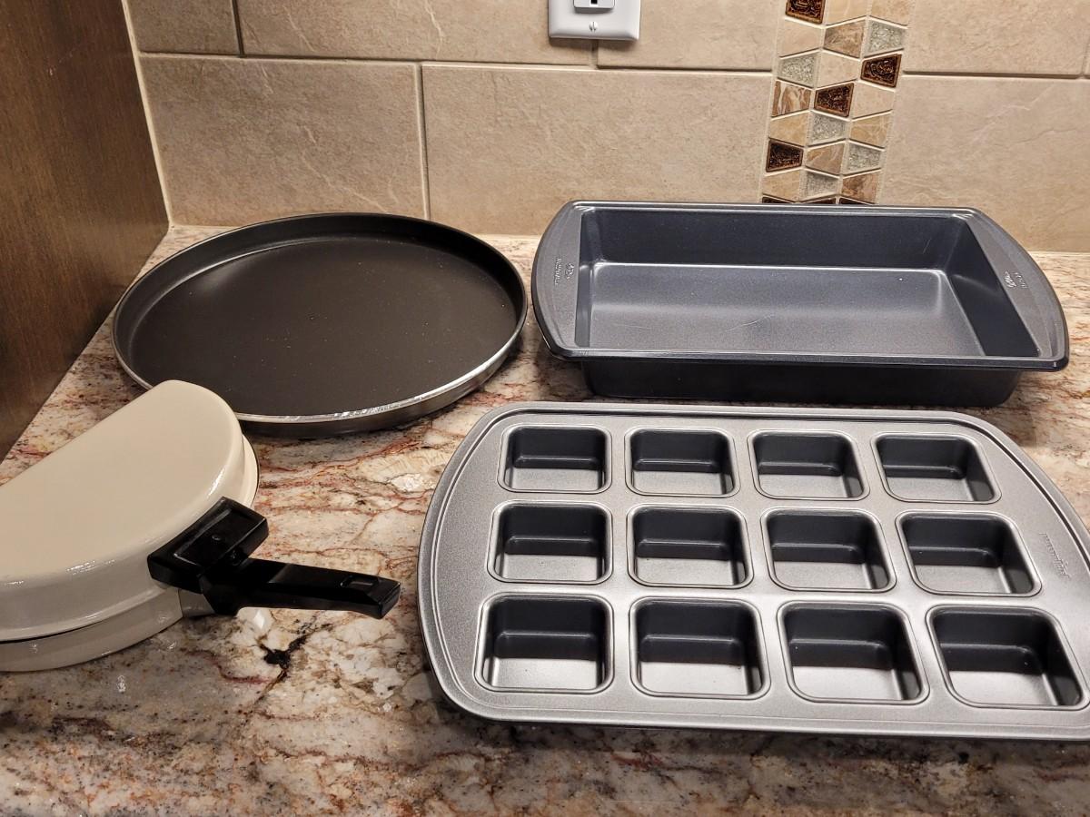 Lot 60: Pampered Chef Square Muffin Pan, Egg Cooker, Wilson Cake Pan