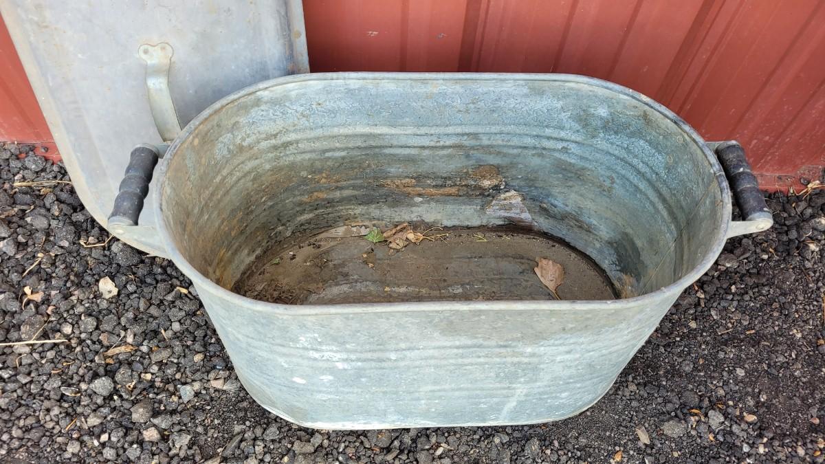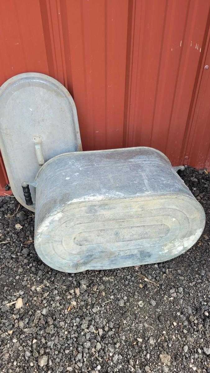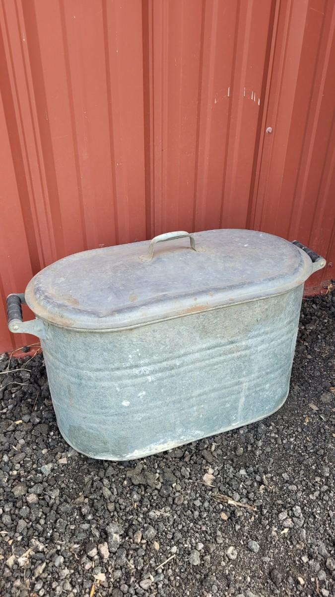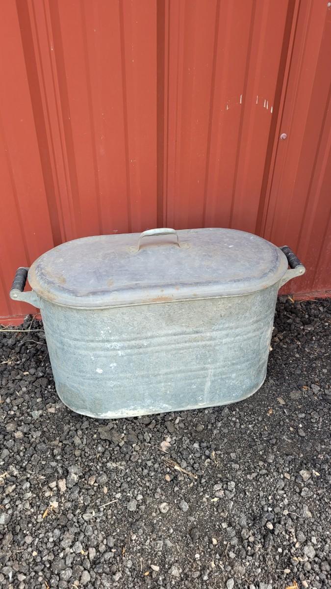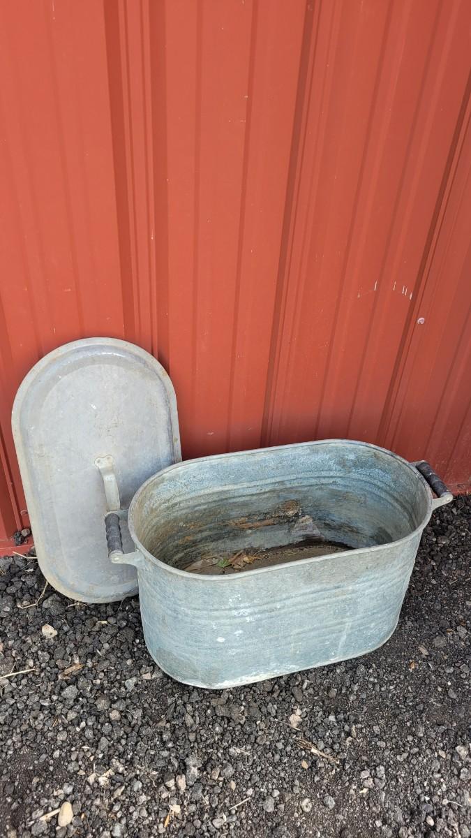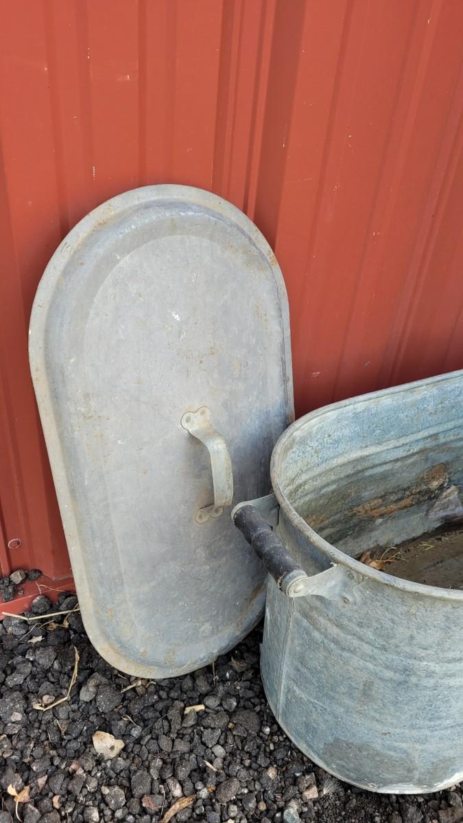 Lot 60: Large Steel Basin w/ Lid (Original Wood Handles)