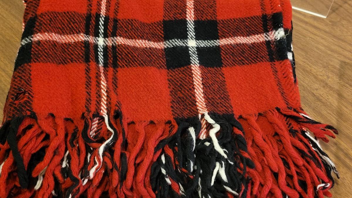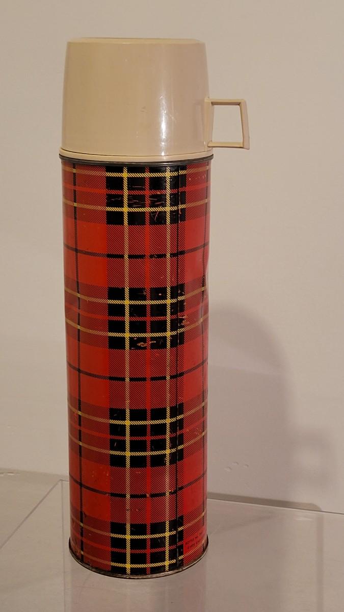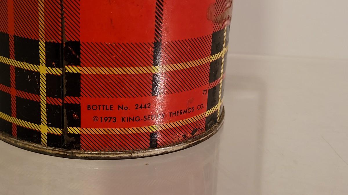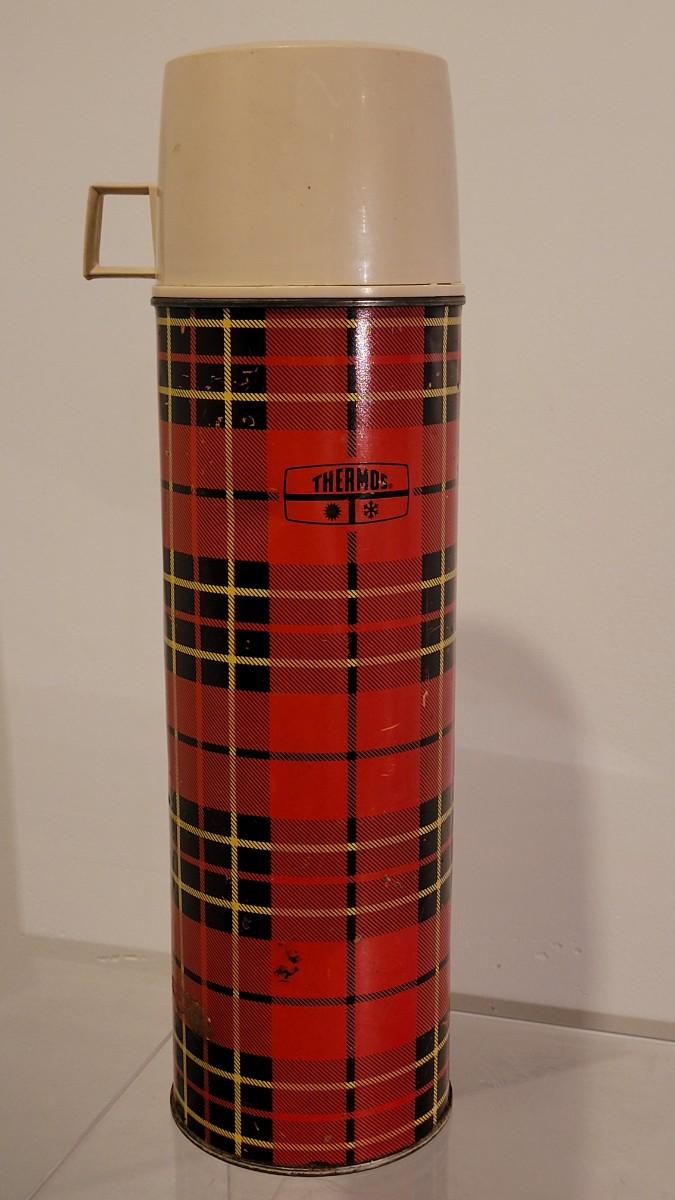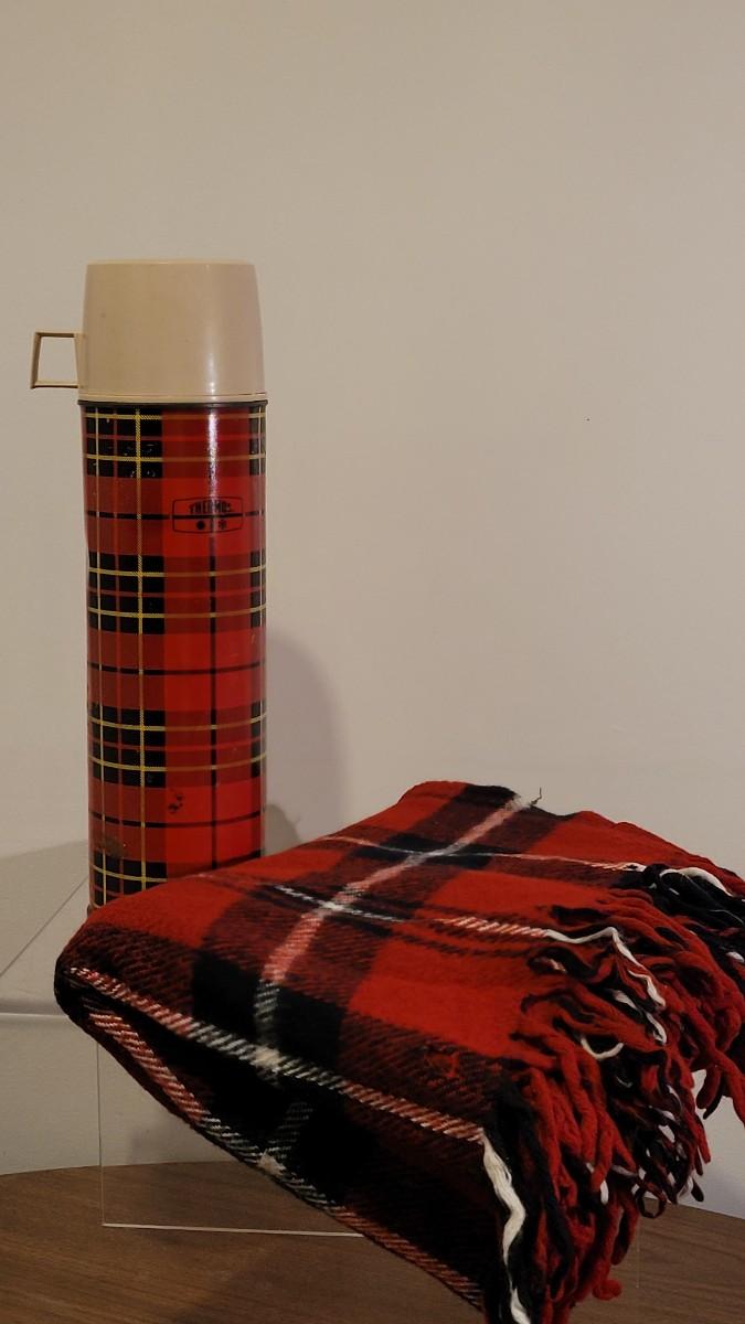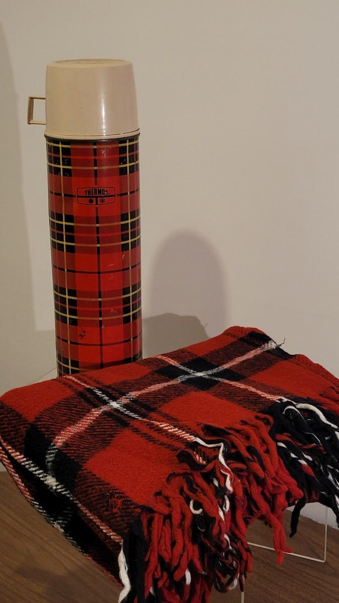 Lot 60: Vintage Red & Black Plaid Wool Blanket and Thermos