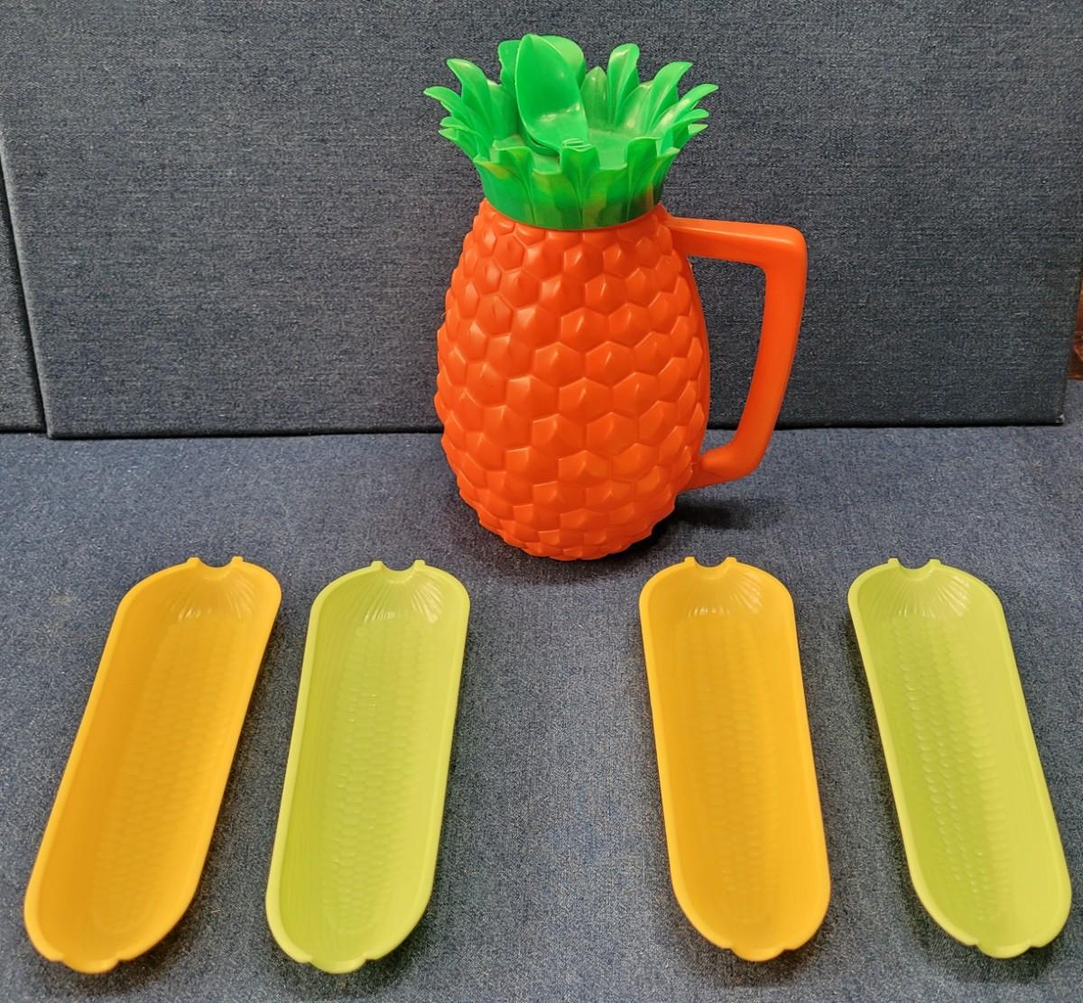 Lot 60: Vintage Plastic Pineapple Pitcher and Corn Dishes