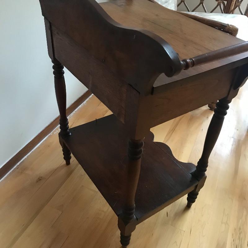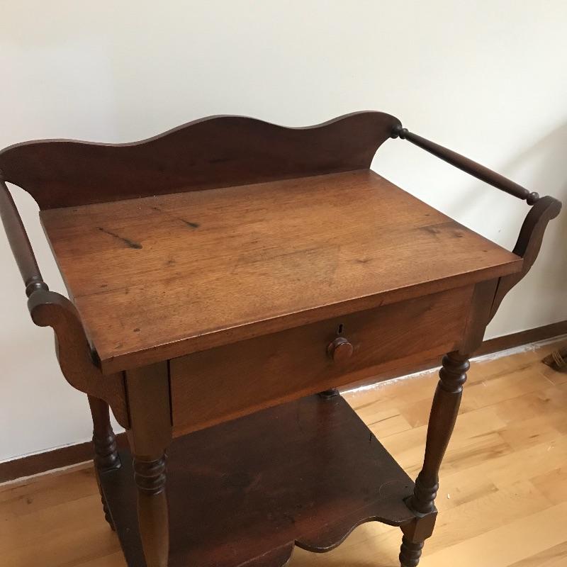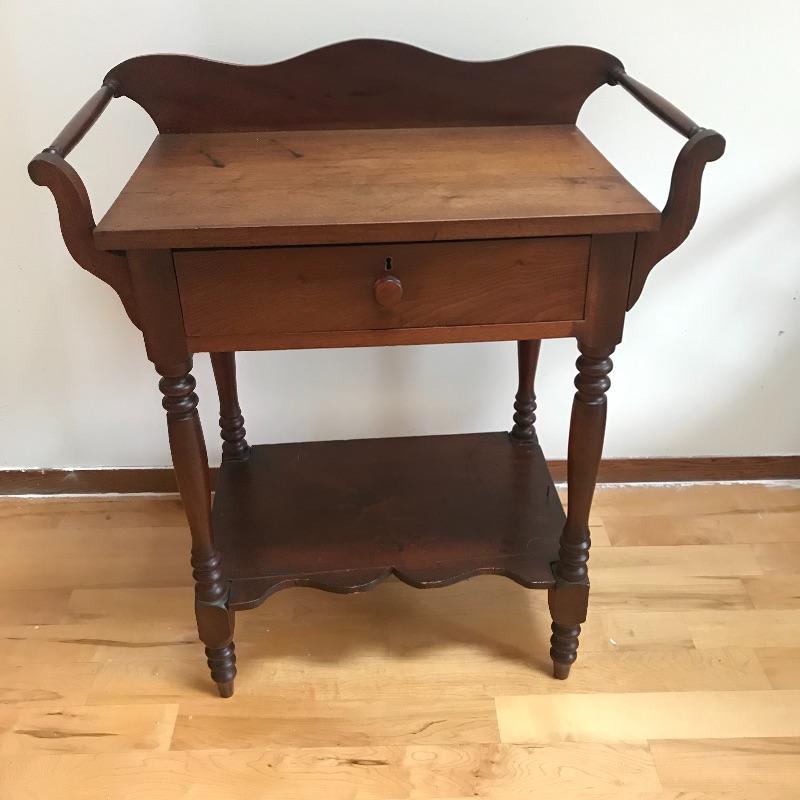 Well crafted, all wood accent piece. Sturdy Construction. Measures 29"L x 16.5" W x 29.5 "H. Top shows some blemishes but overall good condition. Age of wash stand is unknown. Local pick-up only.