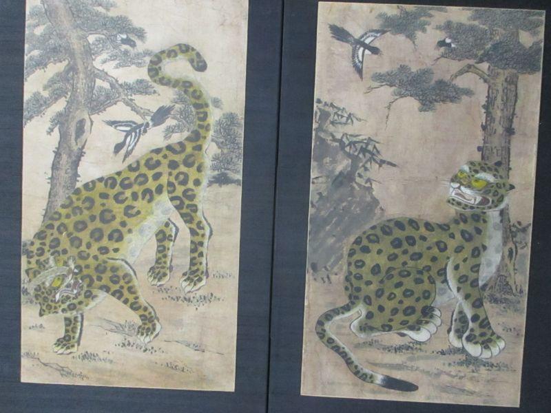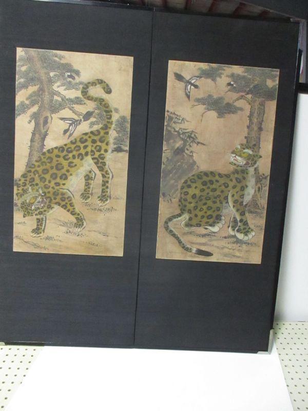 Lot 60 - Vintage Asian Leopard Double Panel Screen