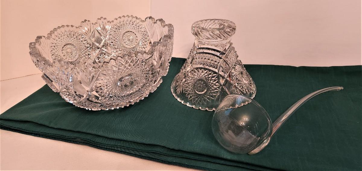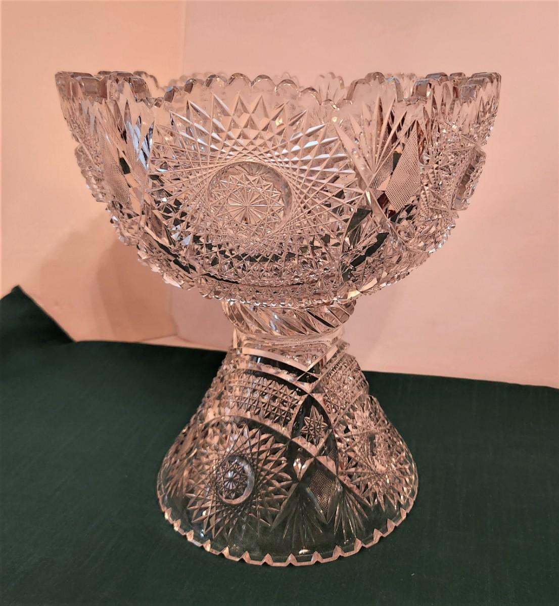 Lot #60 Beautiful Vintage Cut Glass Punch Bowl on Stand