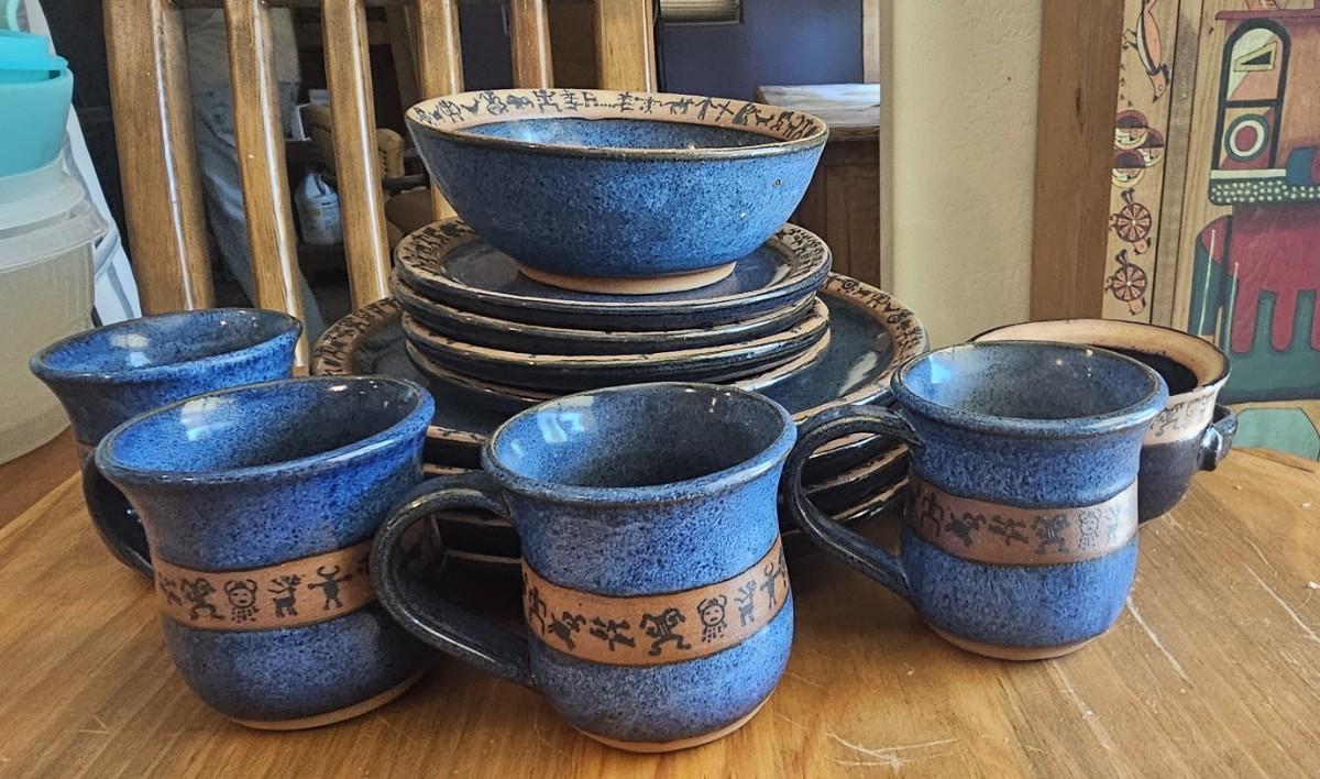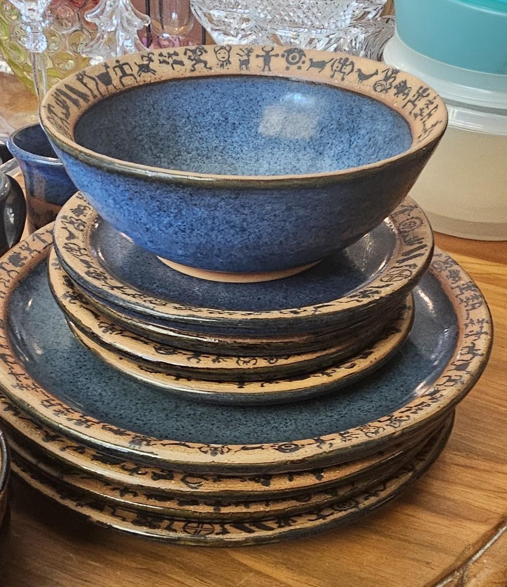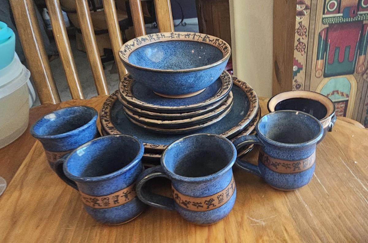Items sold in this lot: Blue / Tan dish set ONLY