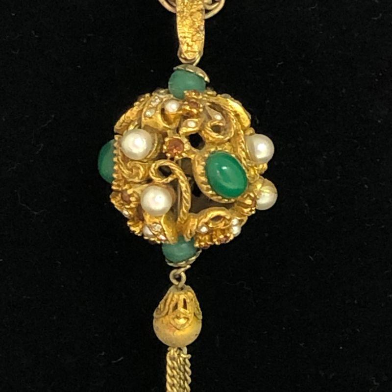 Lot 60 - Filigree Ball Faux Jade Faux Pearl Necklace