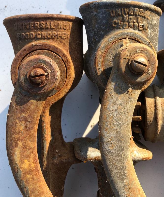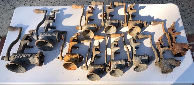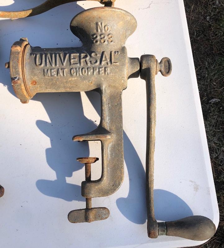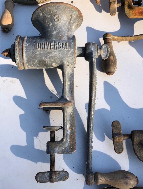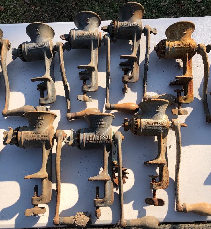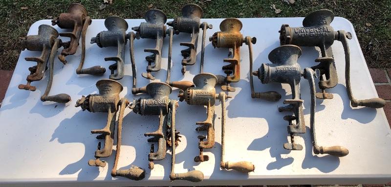 11 Vintage Universal Meat & Food Choppers. 2 No. 1’s, 7 No. 2’s, 1 No. 3 & 1 No. 333. MM Please see all pictures for content of the lot, condition of the lot, and measurements if taken. Pictures are the best representation of the items listed and items are untested unless indicated in description. Thank you for looking and have fun bidding!