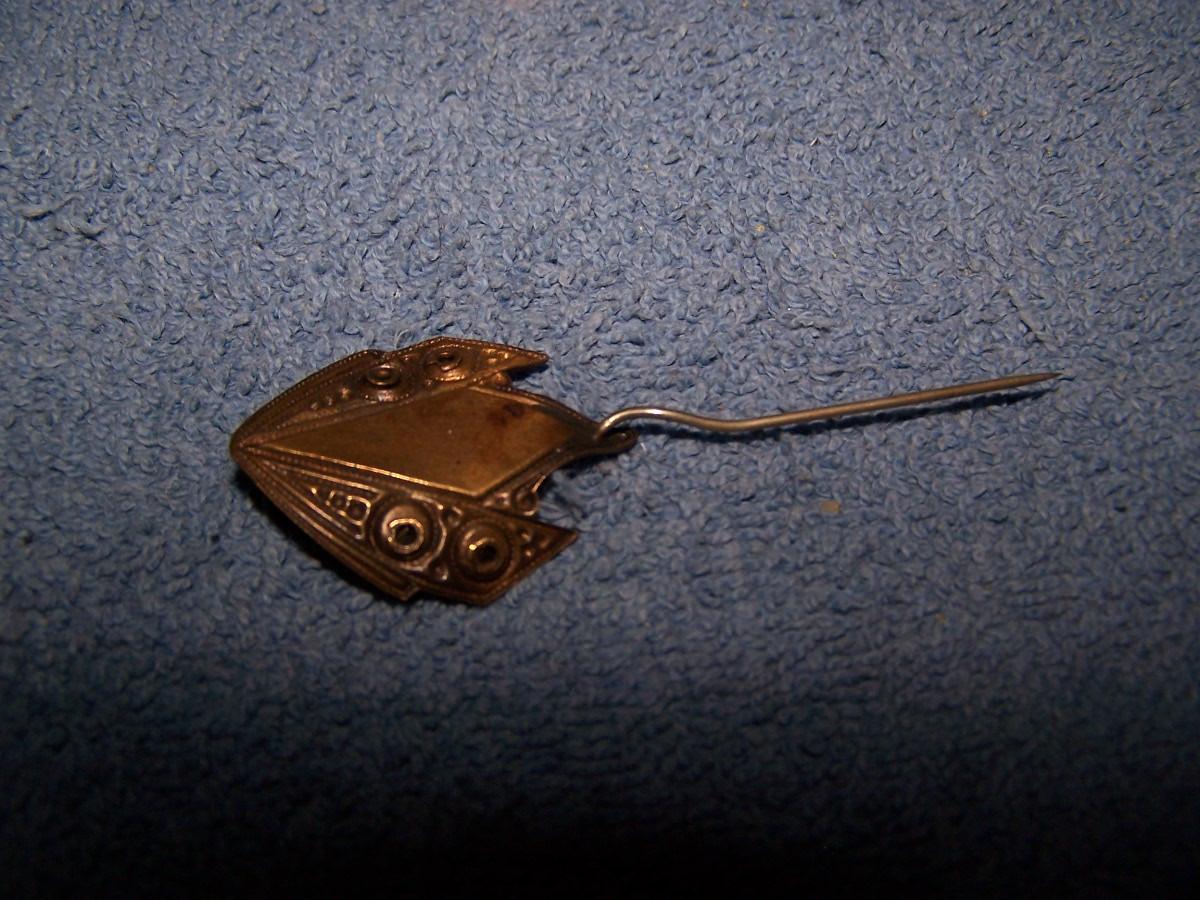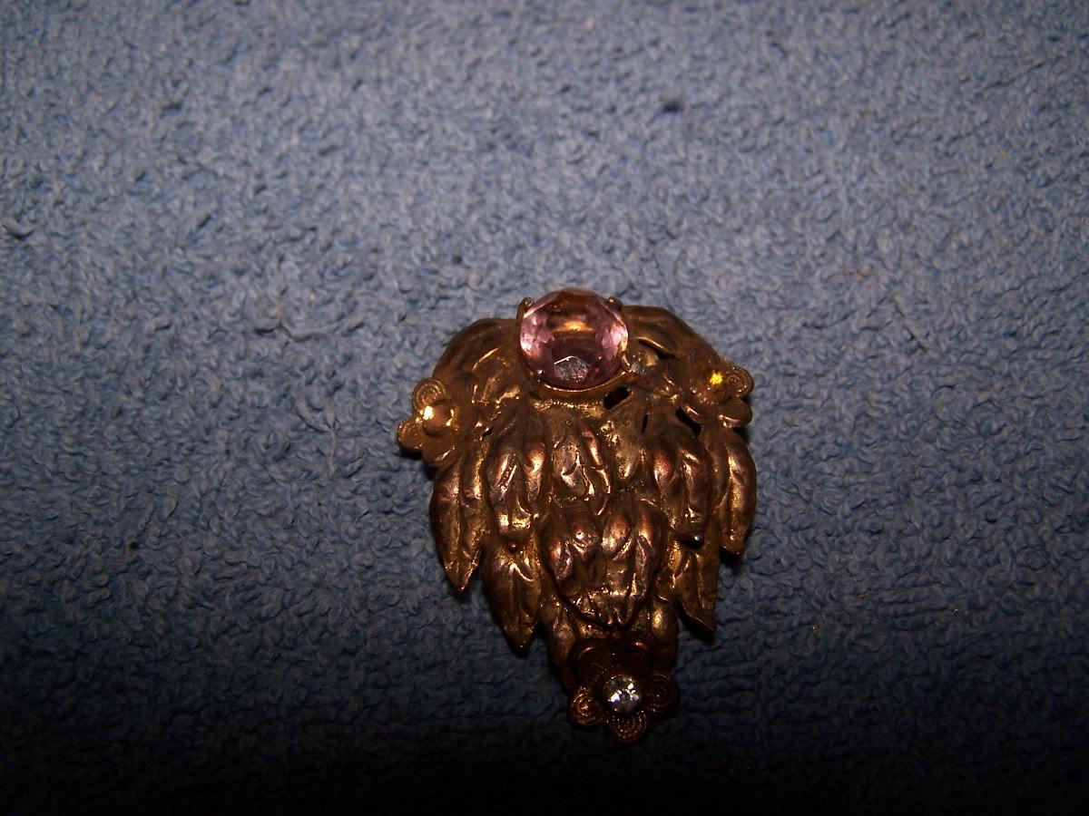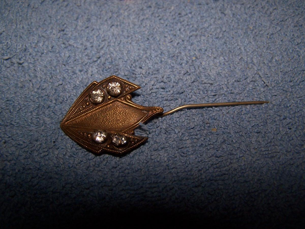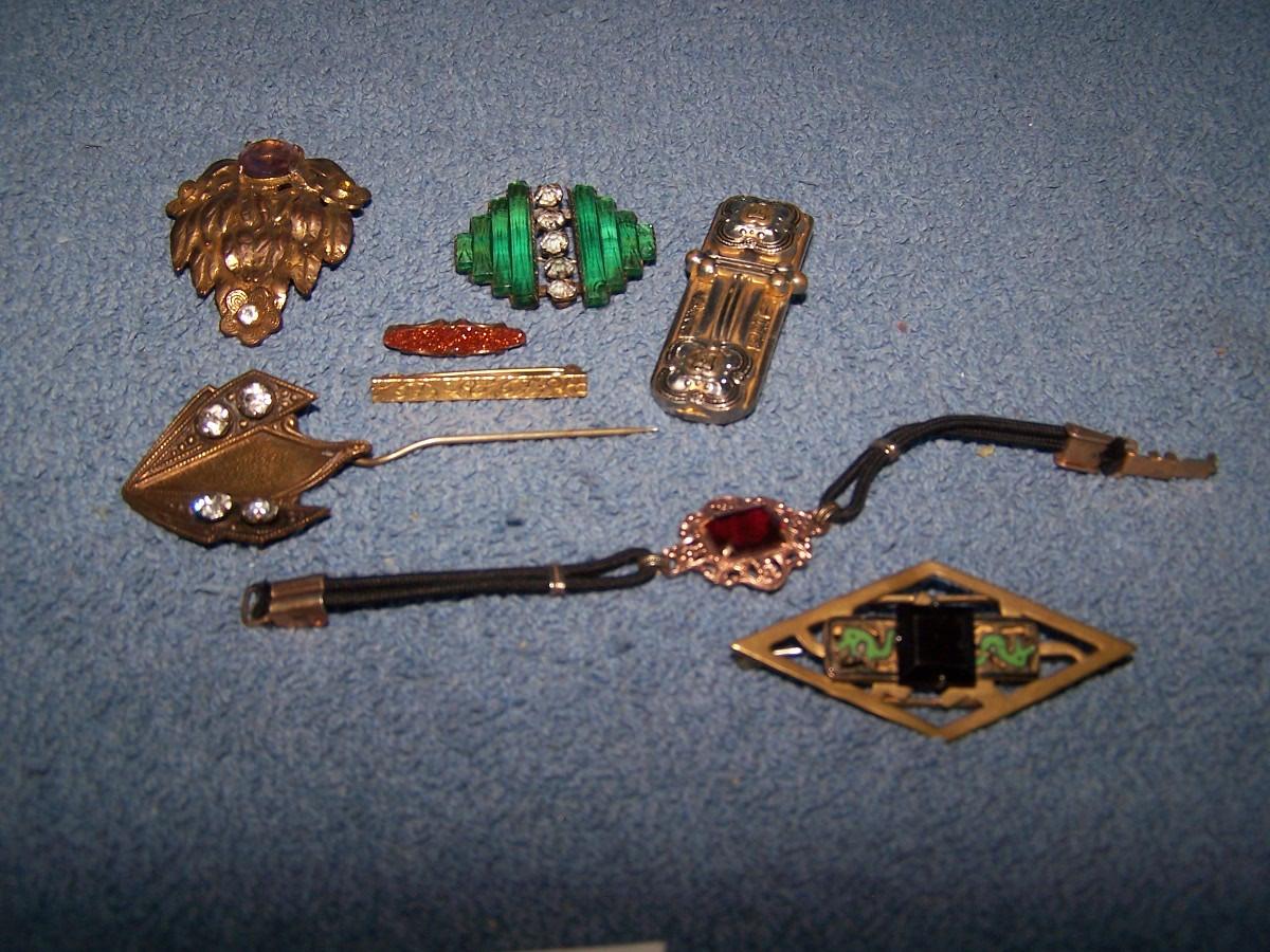 THIS IS SOME GRAND OLD JEWELRY!!! UNMARKED.. ART DECO, GREEN GLASS, PIN IS 7/8'' X 1 1/4''. LIGHT WEAR..