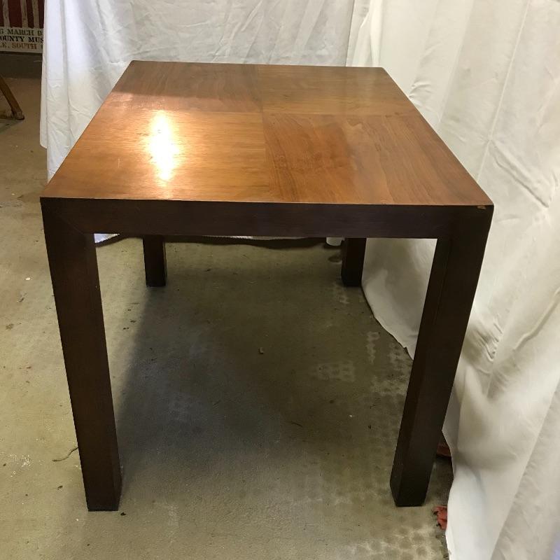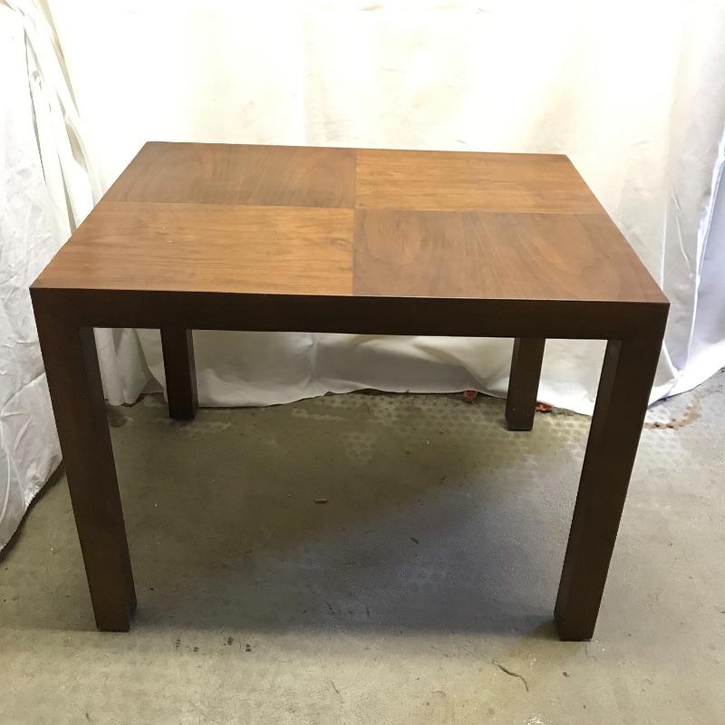 This Lane table is versatile and would look great in almost any space. We love the alternating wood grain top and it’s a Lane, so you know it’s quality. Piece is sturdy, needs a bit more cleaning and measures 26” x 20” x 20.5”. Local pick up only.