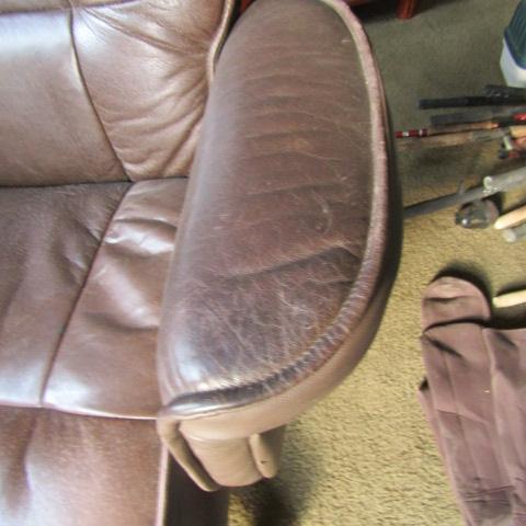 SHOWS SOME WEAR ON THE SEAT AND A BIT DIRTY ON THE ARMS