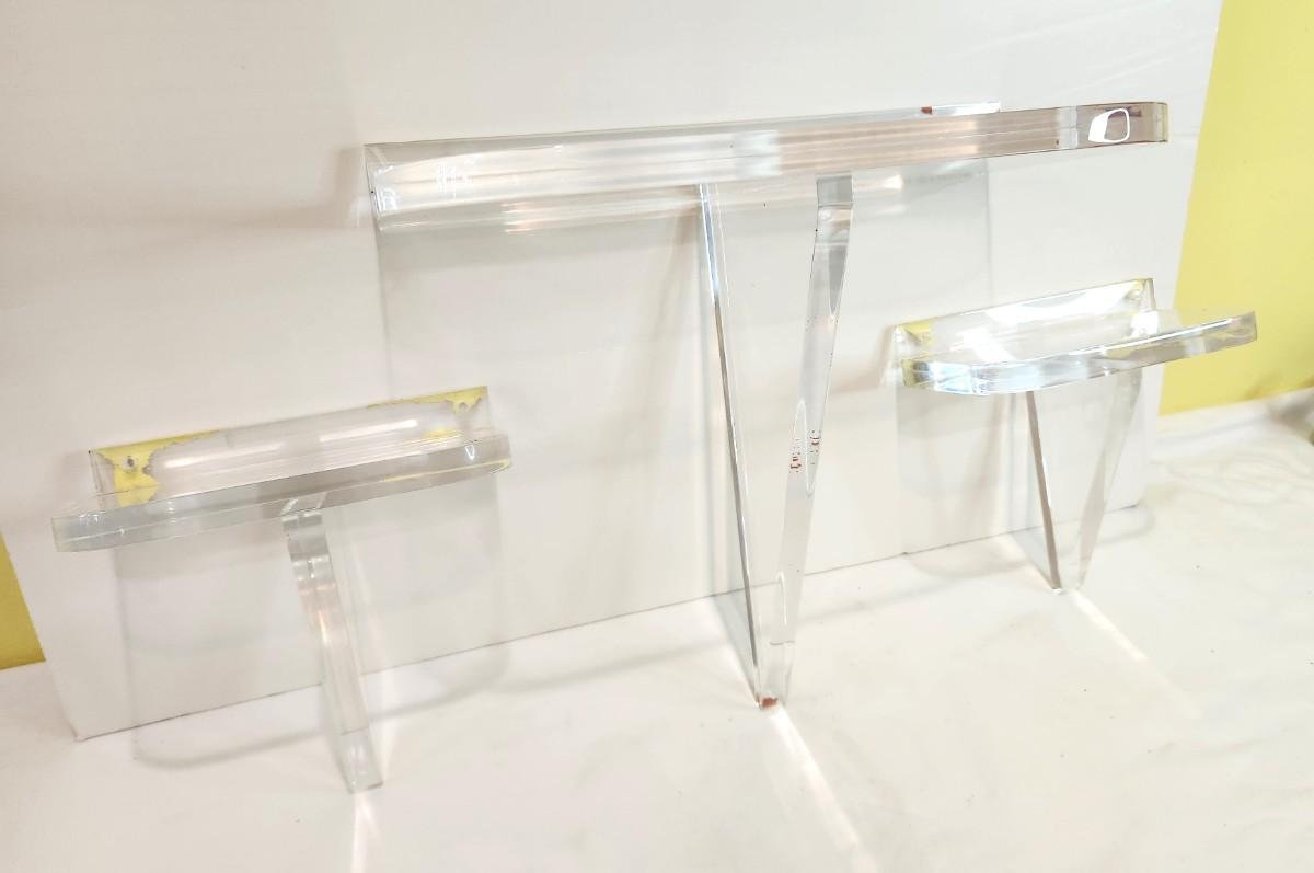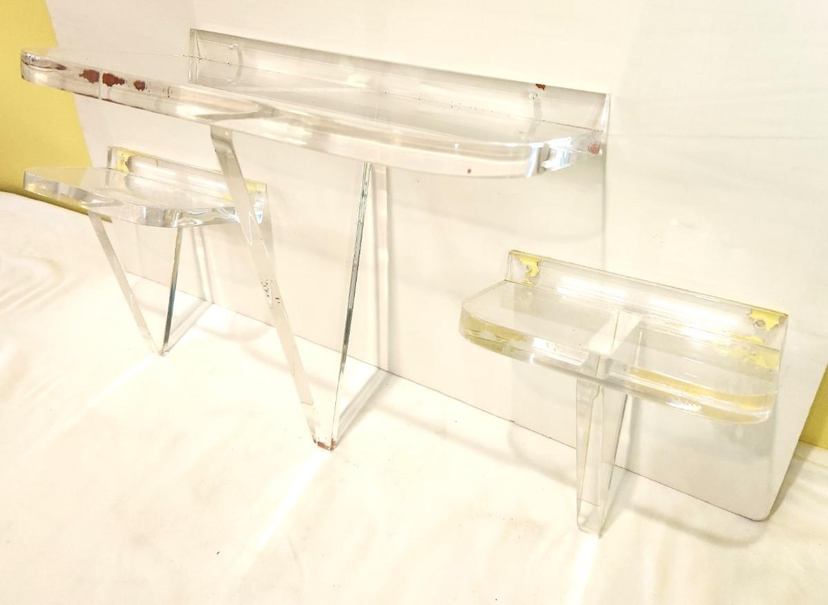 Lot #60 Lot of 3 clear Lucite Wall Shelves