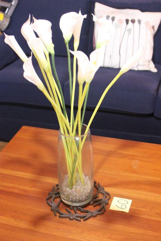 Lot 60 Lrg. Faux White Calla Lily in Glass Vase