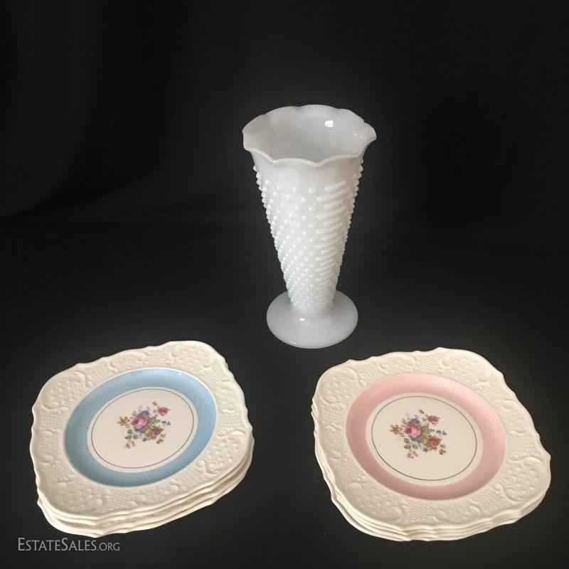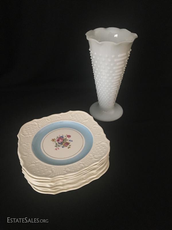 Lot 60 - Milk Glass Vase and China Desert Plates