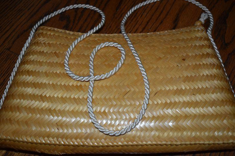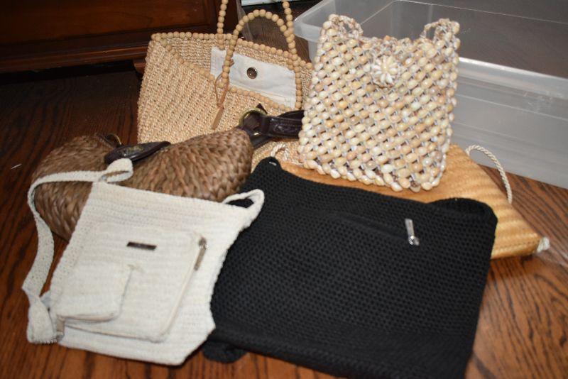 Ladies purses made with wicker, shells, straw, and material. Nine West, Sak, and more.