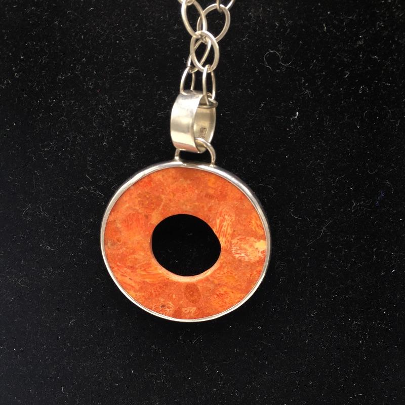 Lot 60 - Coral Pendant Necklace & Sterling Circle Bracelet