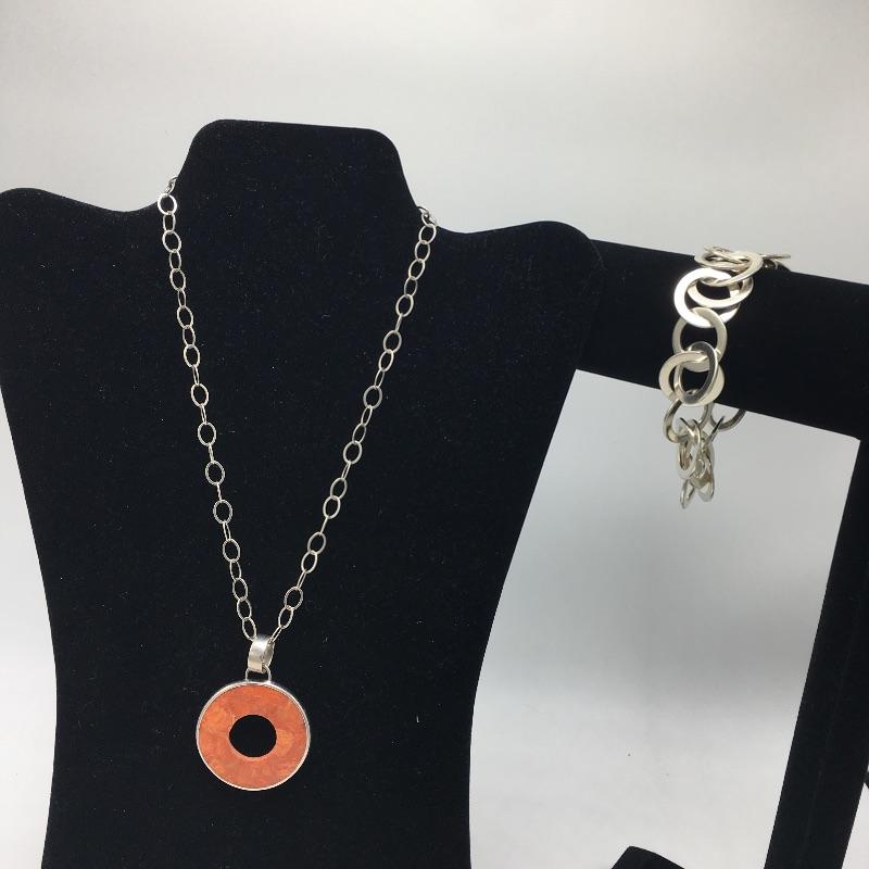Silpada lot includes interlocking sterling silver bracelet with a toggle clasp and a sponge coral pendant on a sterling silver necklace with a lobster clasp.