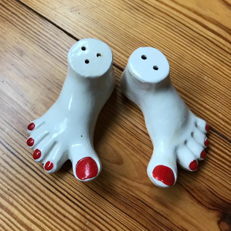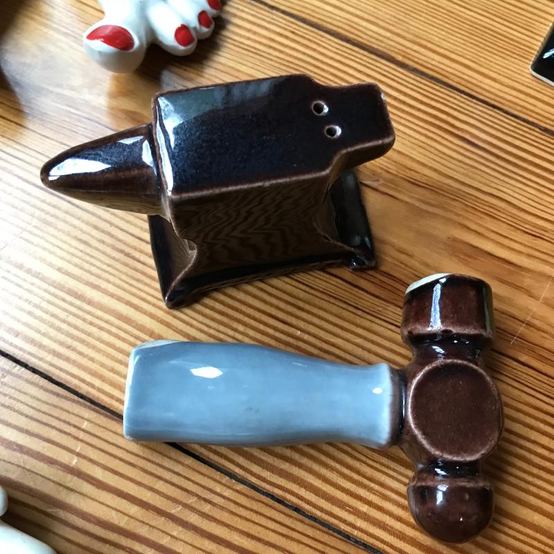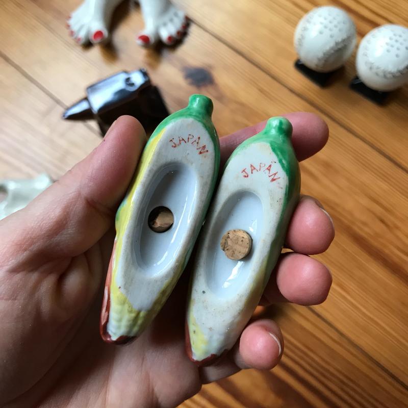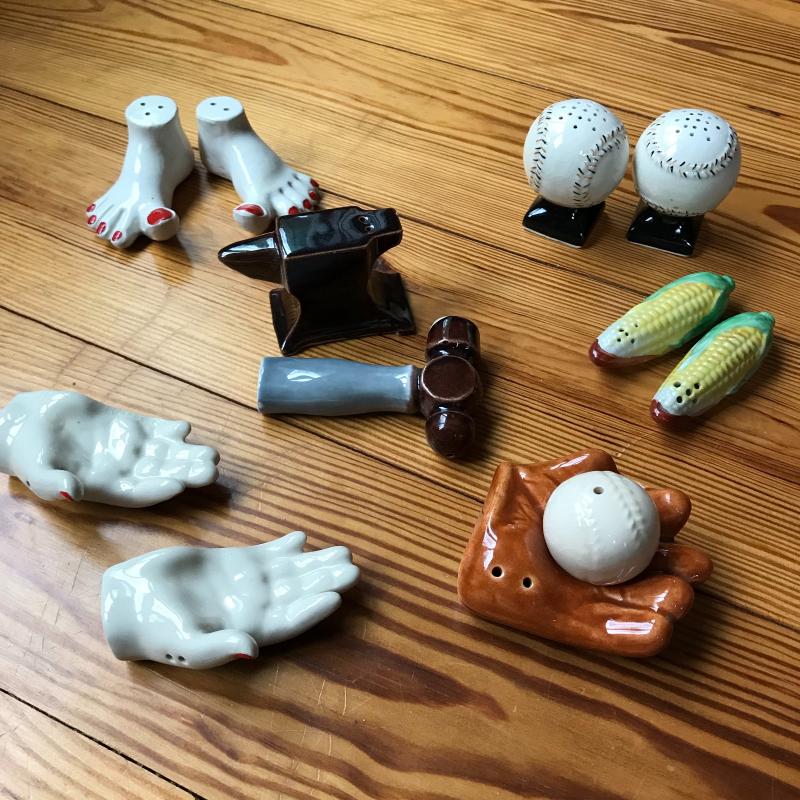 Six whimsical sets of vintage salt and pepper shakers. All are old and show signs of wear but appear to be in good condition. Not all have corks. Shipping available or local pickup in Asheville, NC.