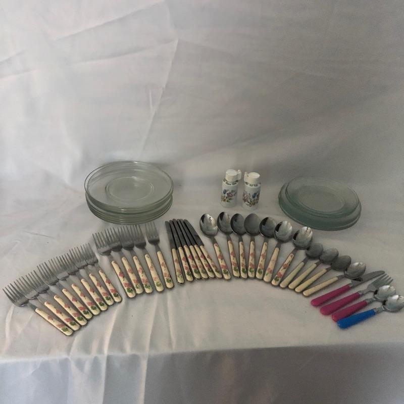 Lot 60 - Vintage Silverware, Salt and Pepper Shakers, Glass Plates