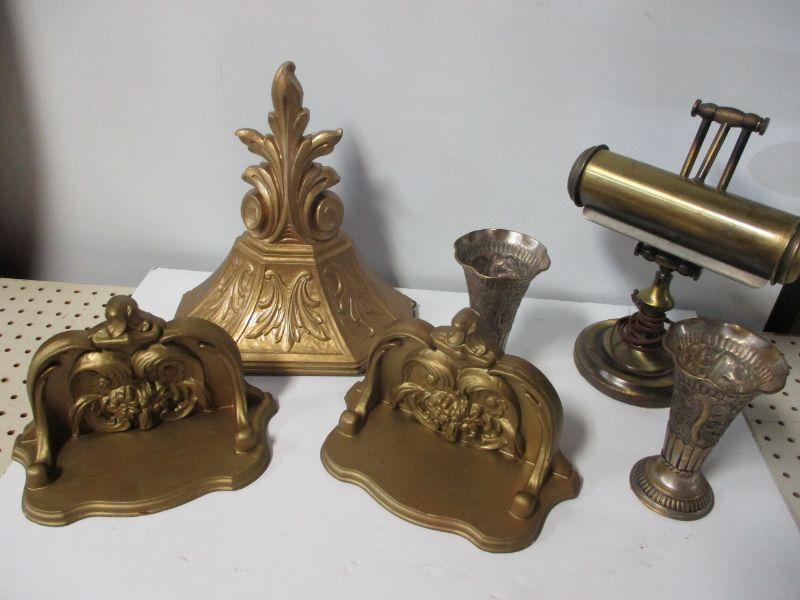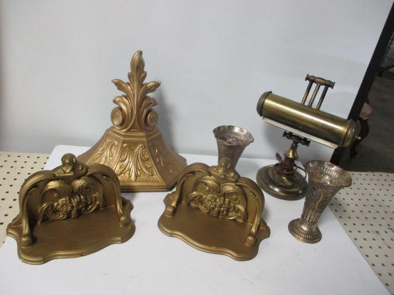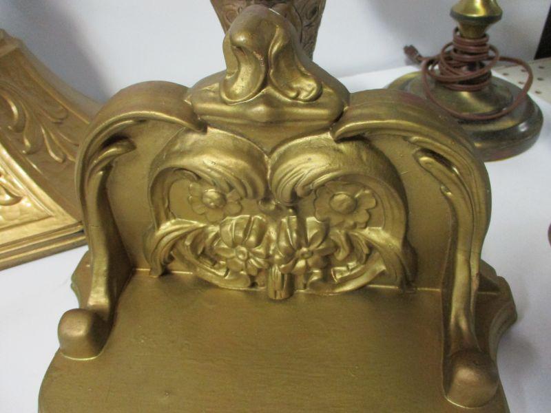 Lot 60 - Wall Display Shelves & Brass Desk Lamp