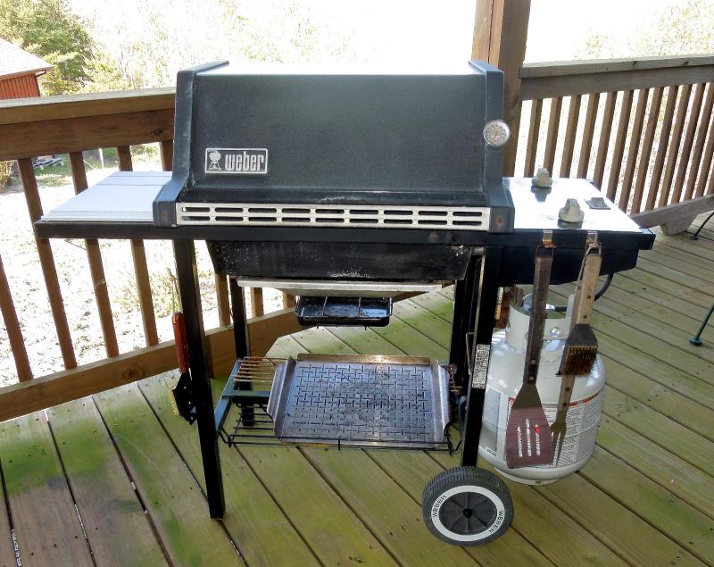 Lot 60: Weber Gas Grill with Two 15 lb Propane Tank Grilling Tools