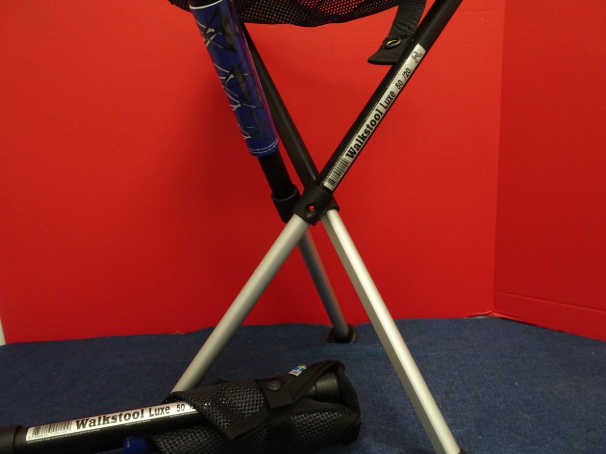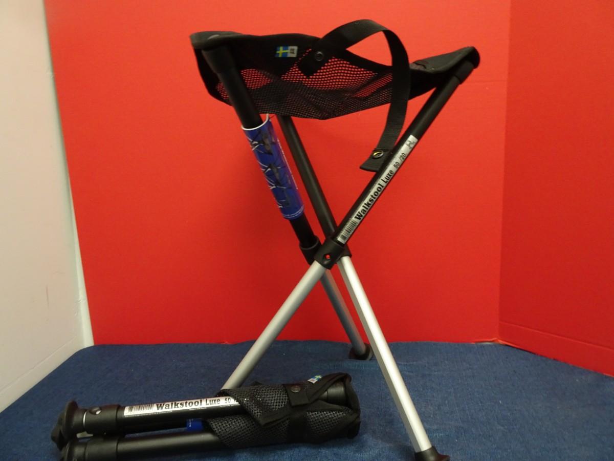 LOT 600. TWO WALKSTOOL BRAND ALUMINUM FOLDING STOOLS (MADE IN SWEDEN)