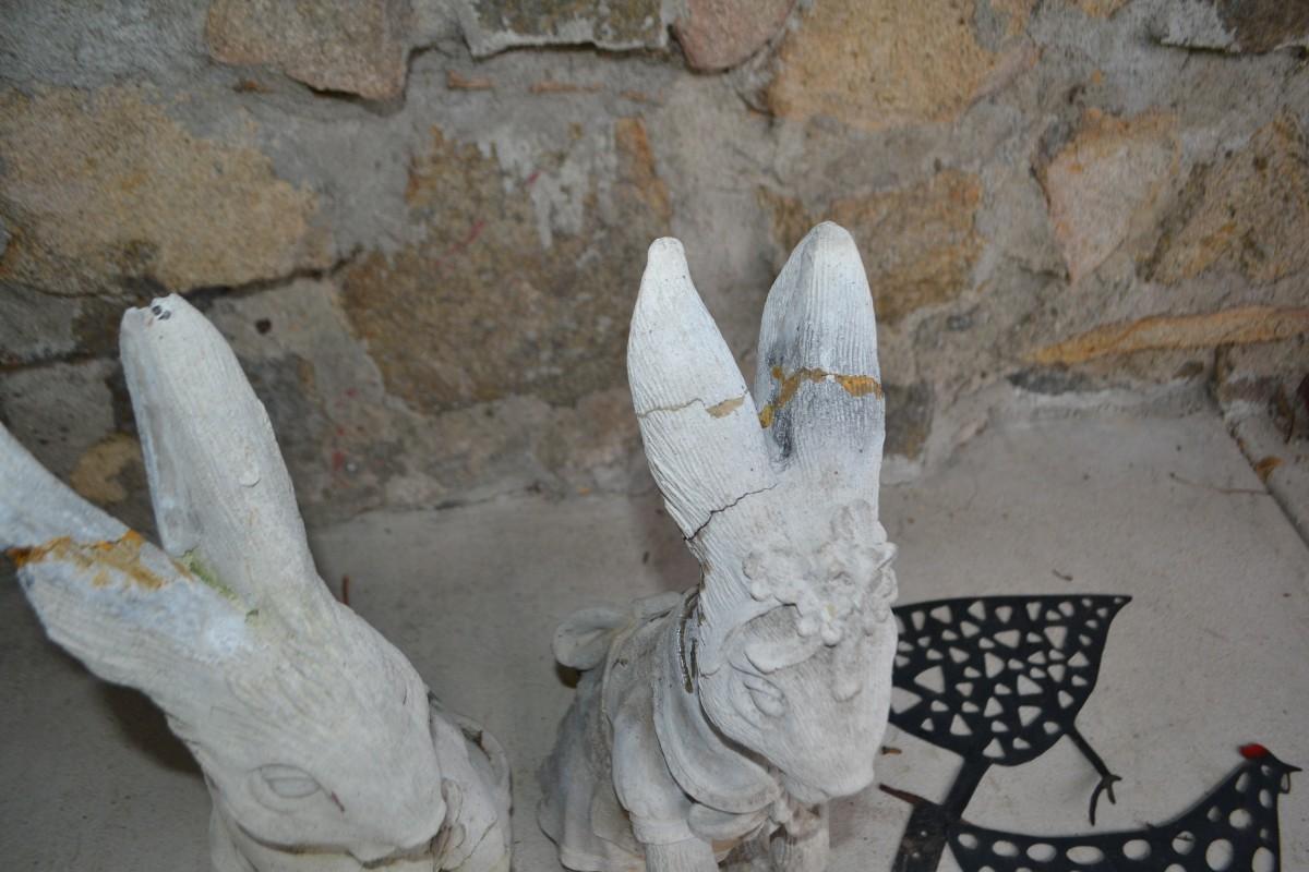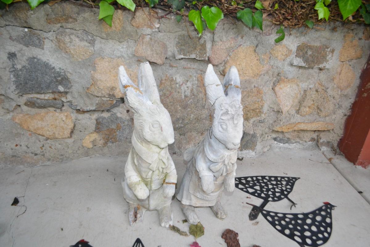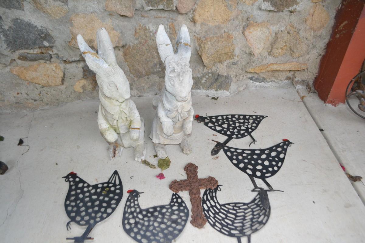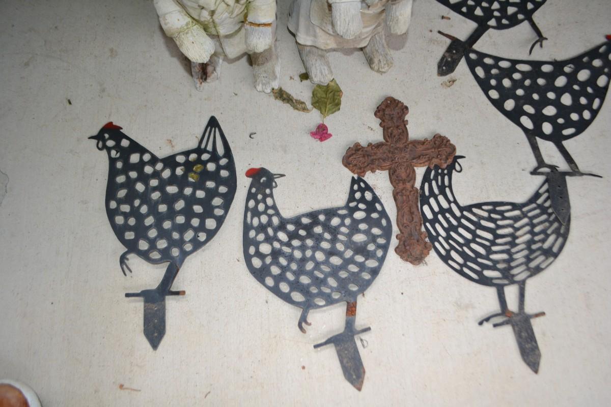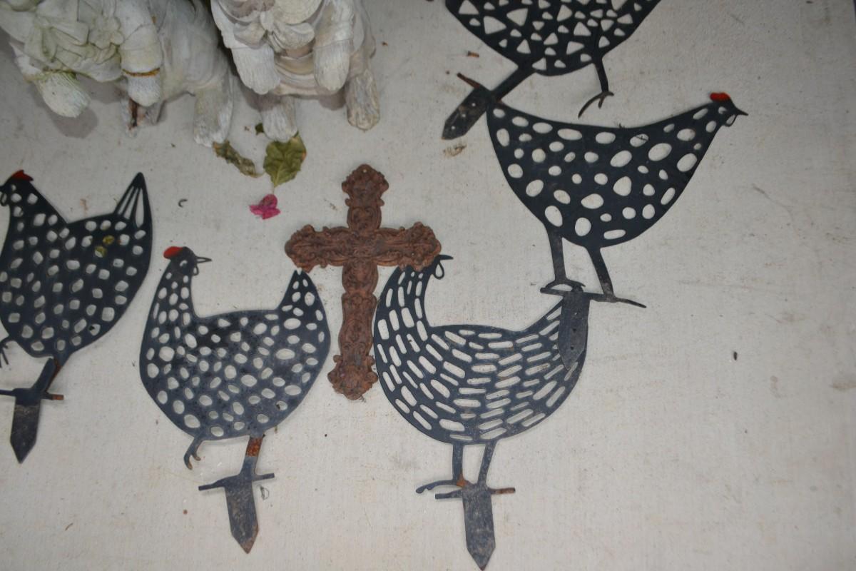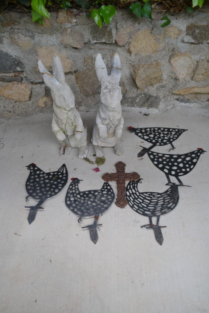 LOT 600. BUNNY DECOR AND 4 METAL YARD DECOR