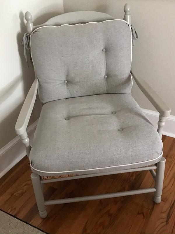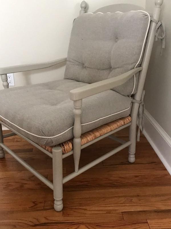 Beautiful French Country Style Arm Chair with Rush Seat seat needs two buttons sewn on.