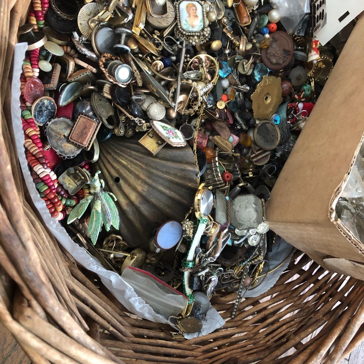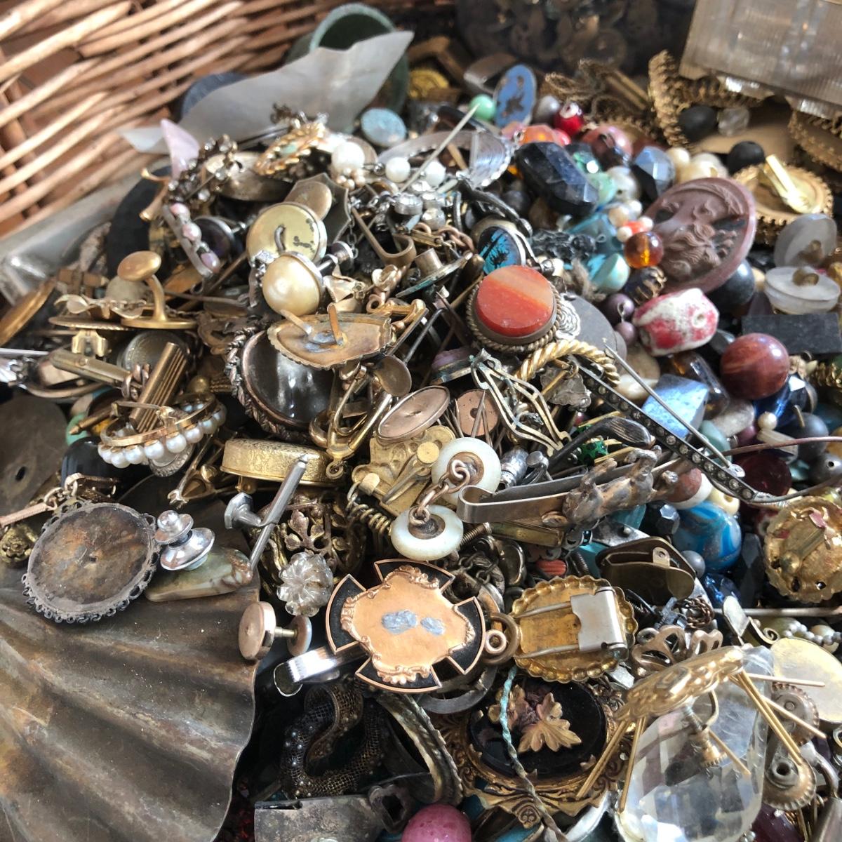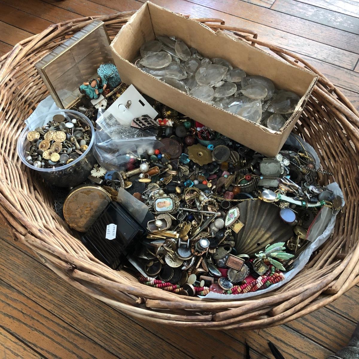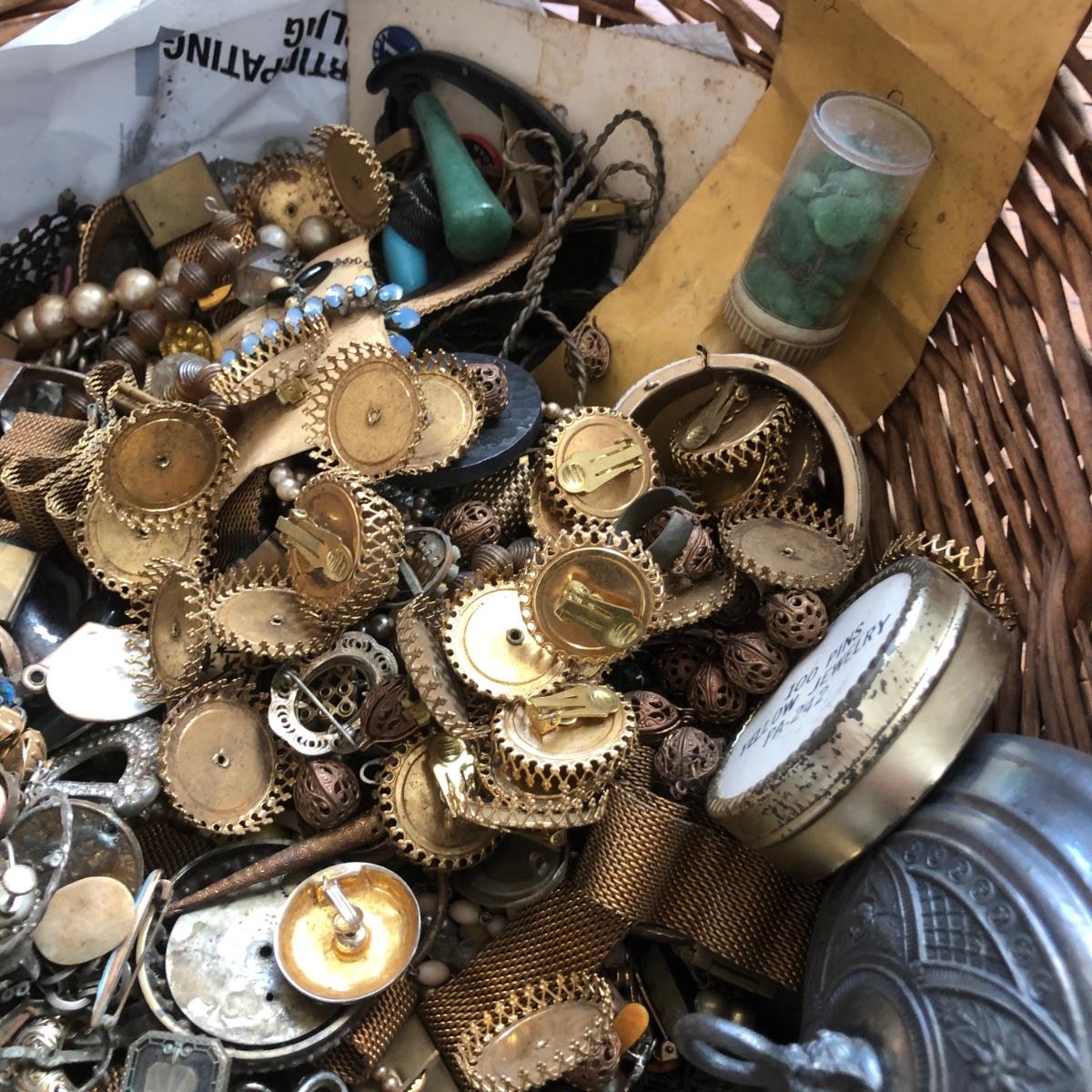 LOT 600: Gigantic Antique and Vintage Jewelry/Crafting Materials Basket