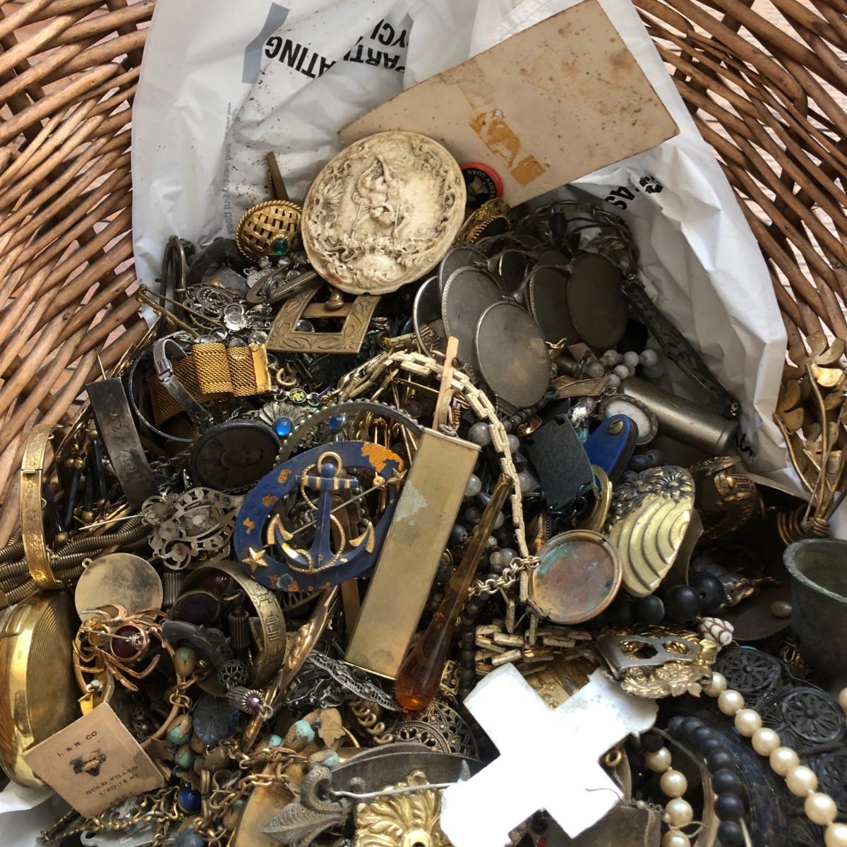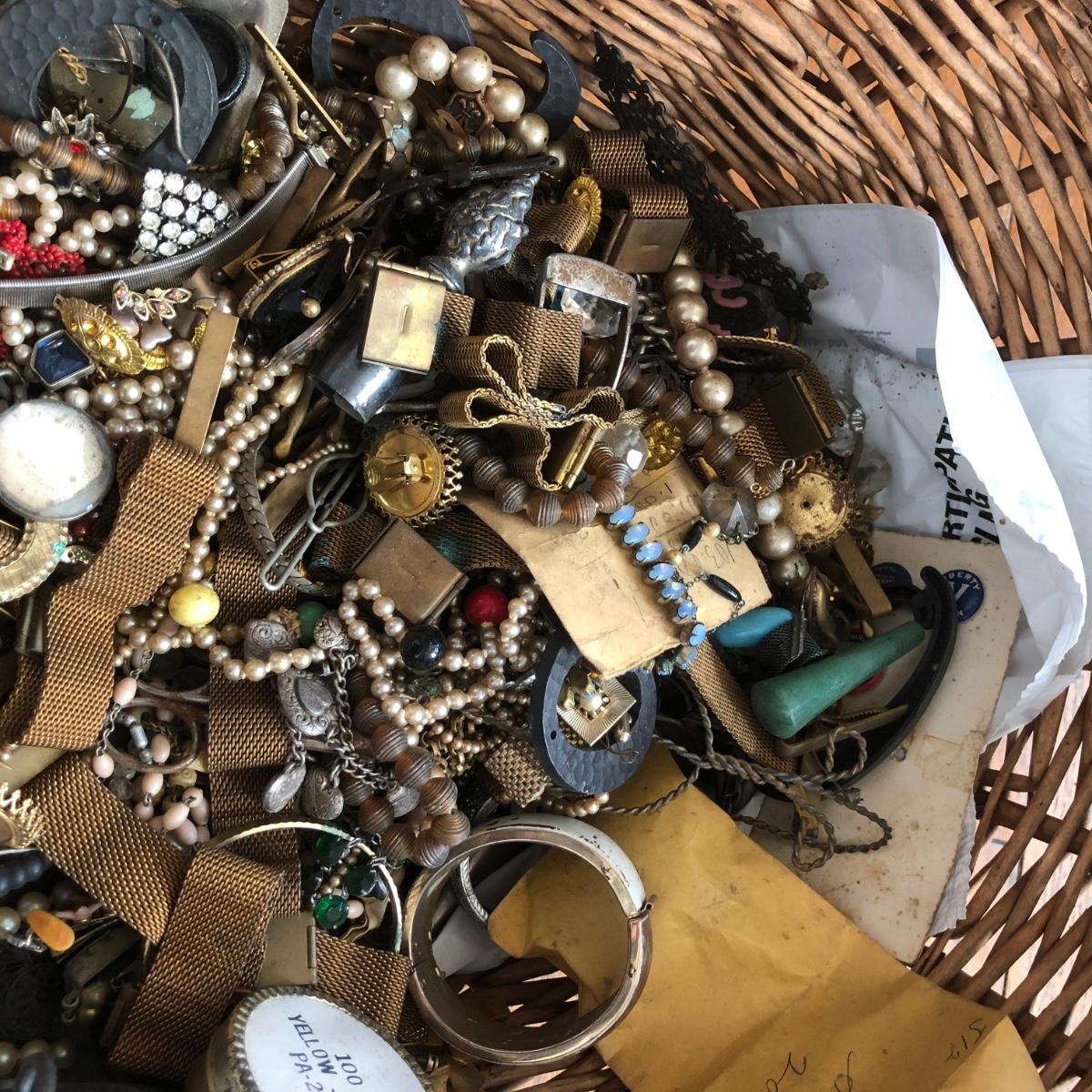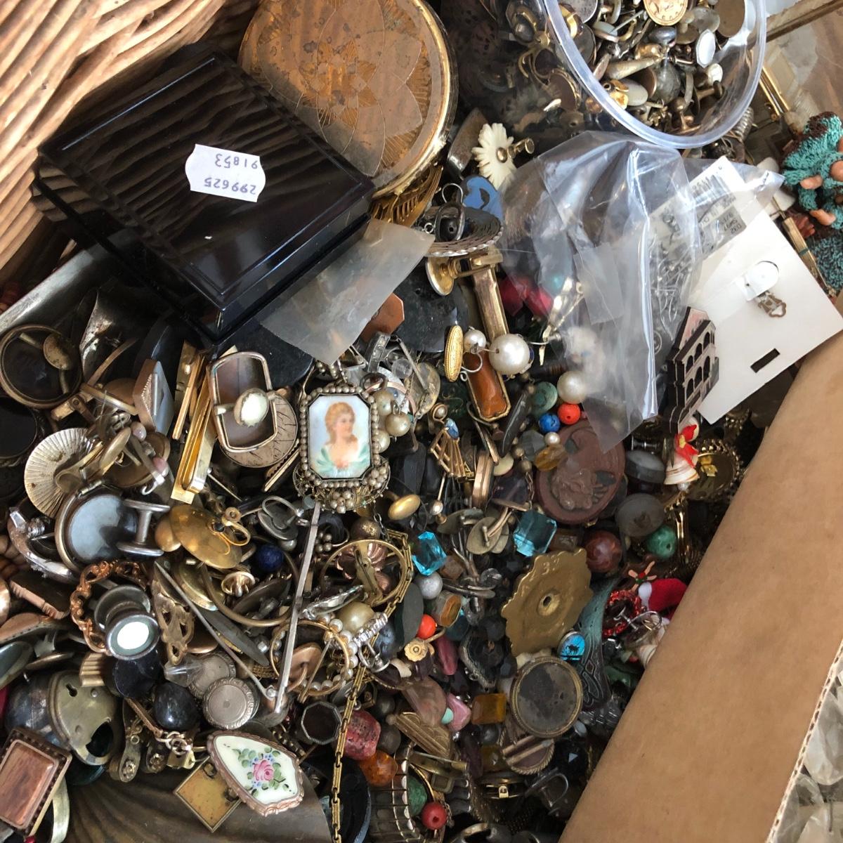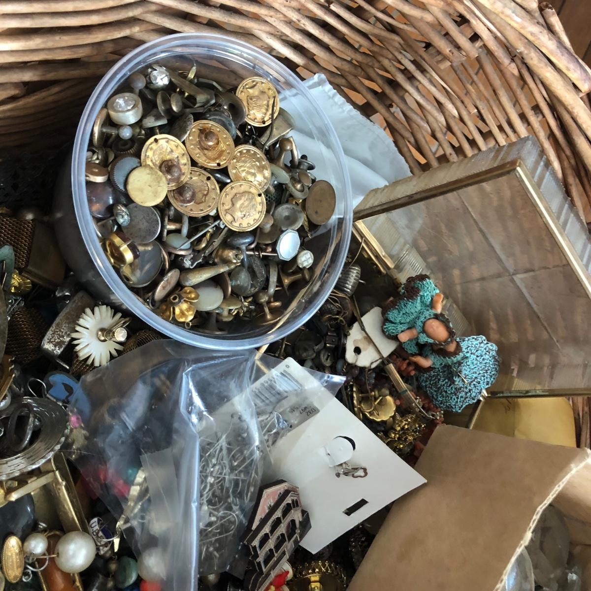 LOT 600: Gigantic Antique and Vintage Jewelry/Crafting Materials Basket