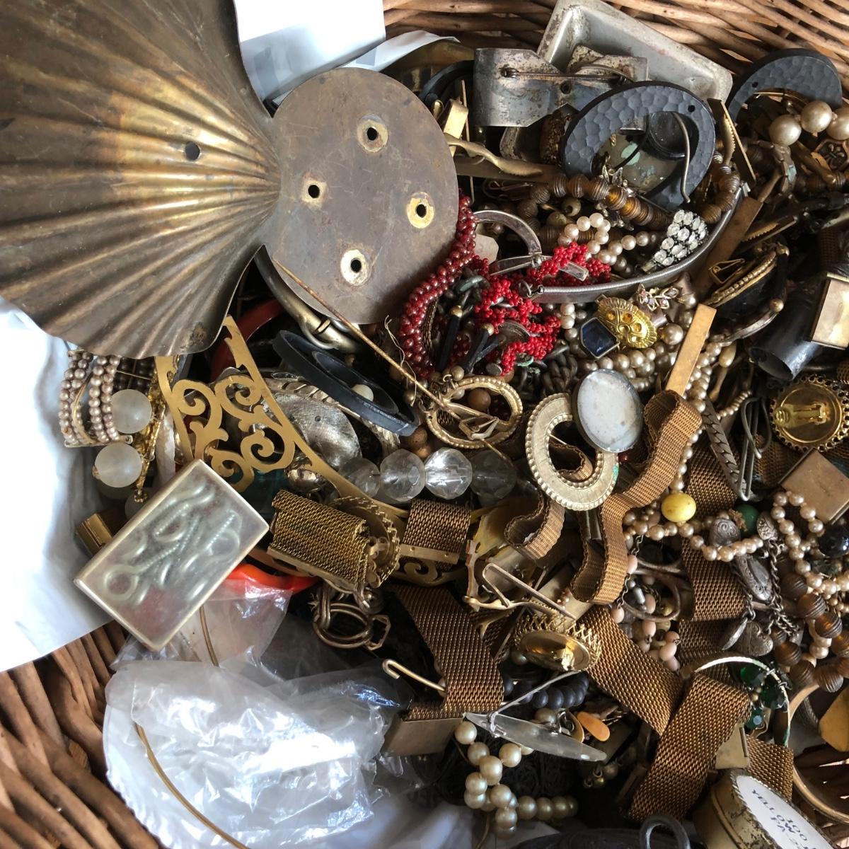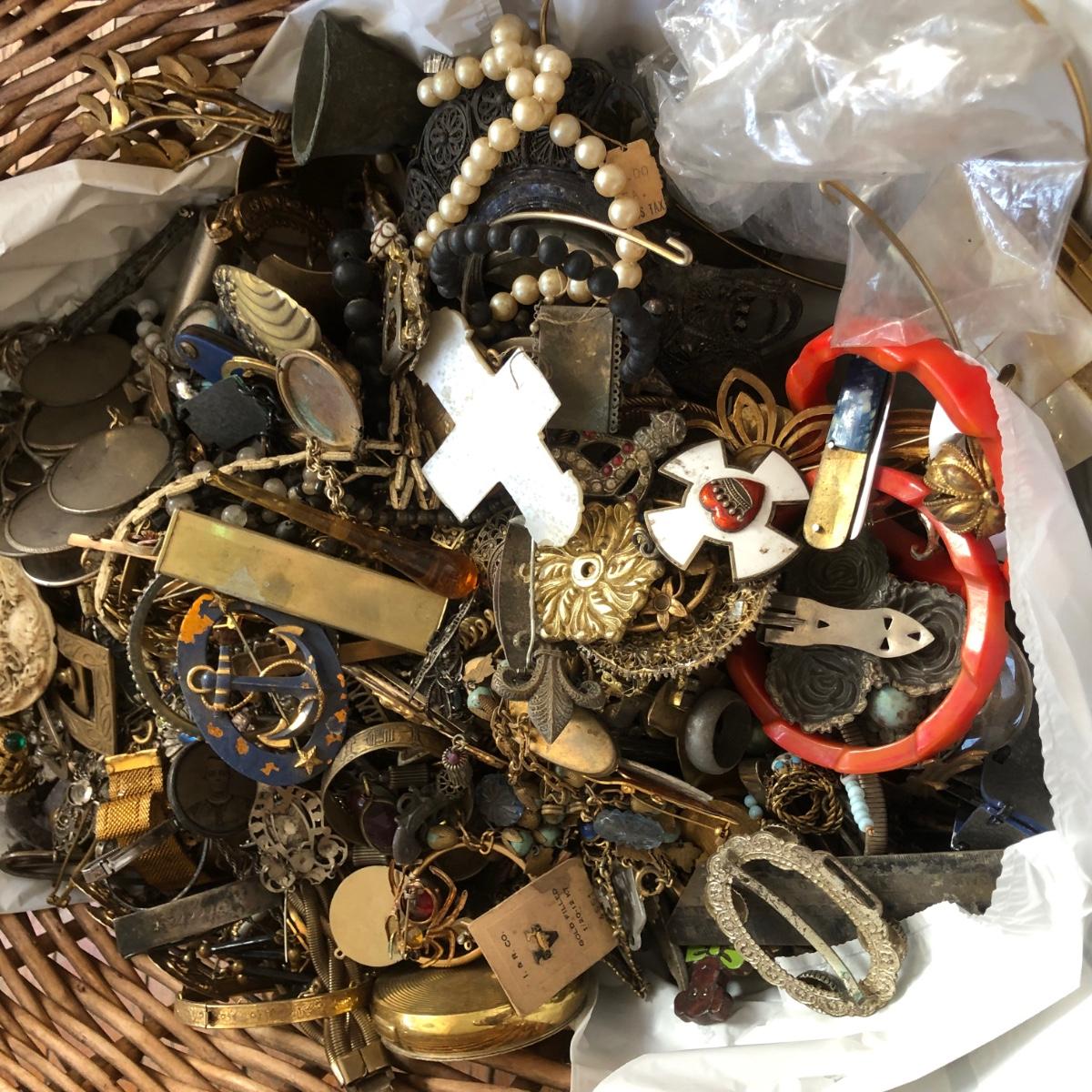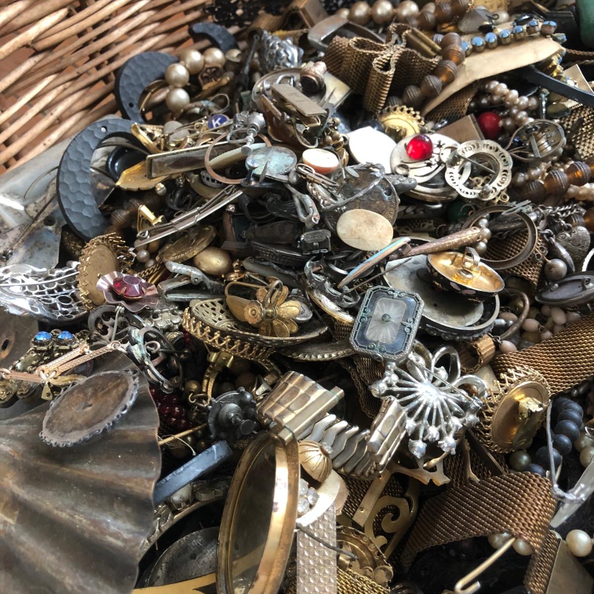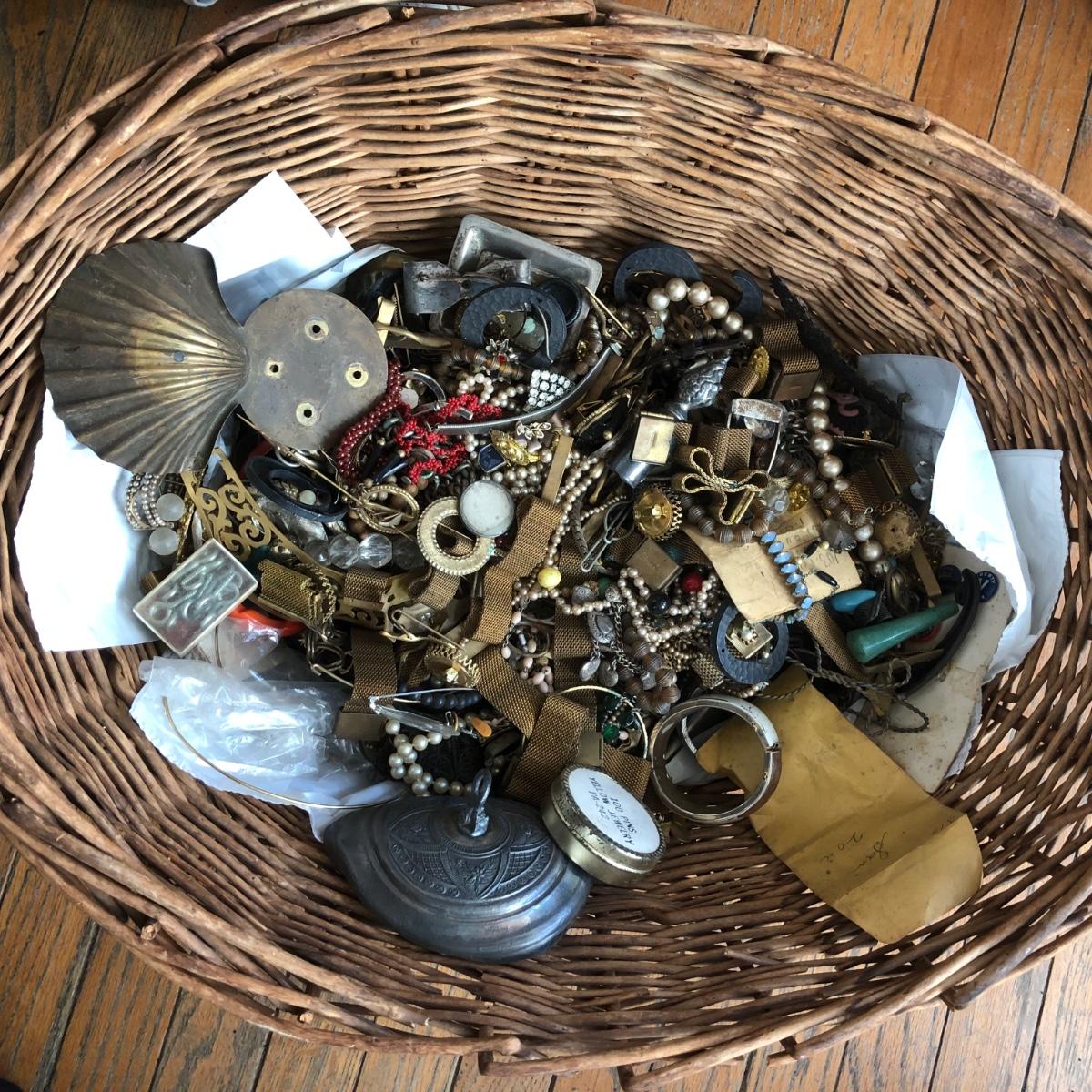 LOT 600: Gigantic Antique and Vintage Jewelry/Crafting Materials Basket