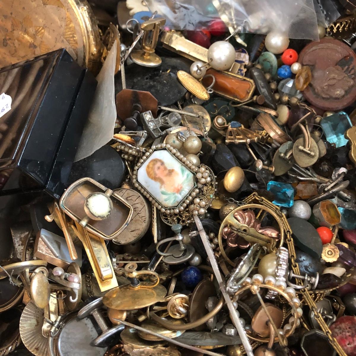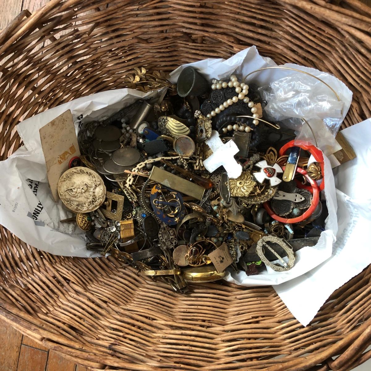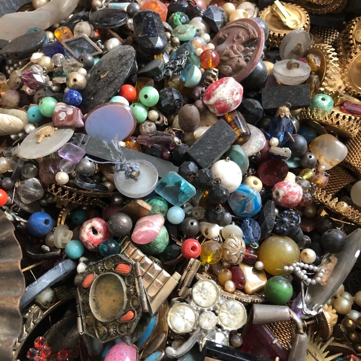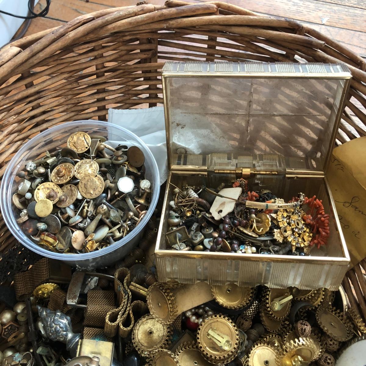 LOT 600: Gigantic Antique and Vintage Jewelry/Crafting Materials Basket