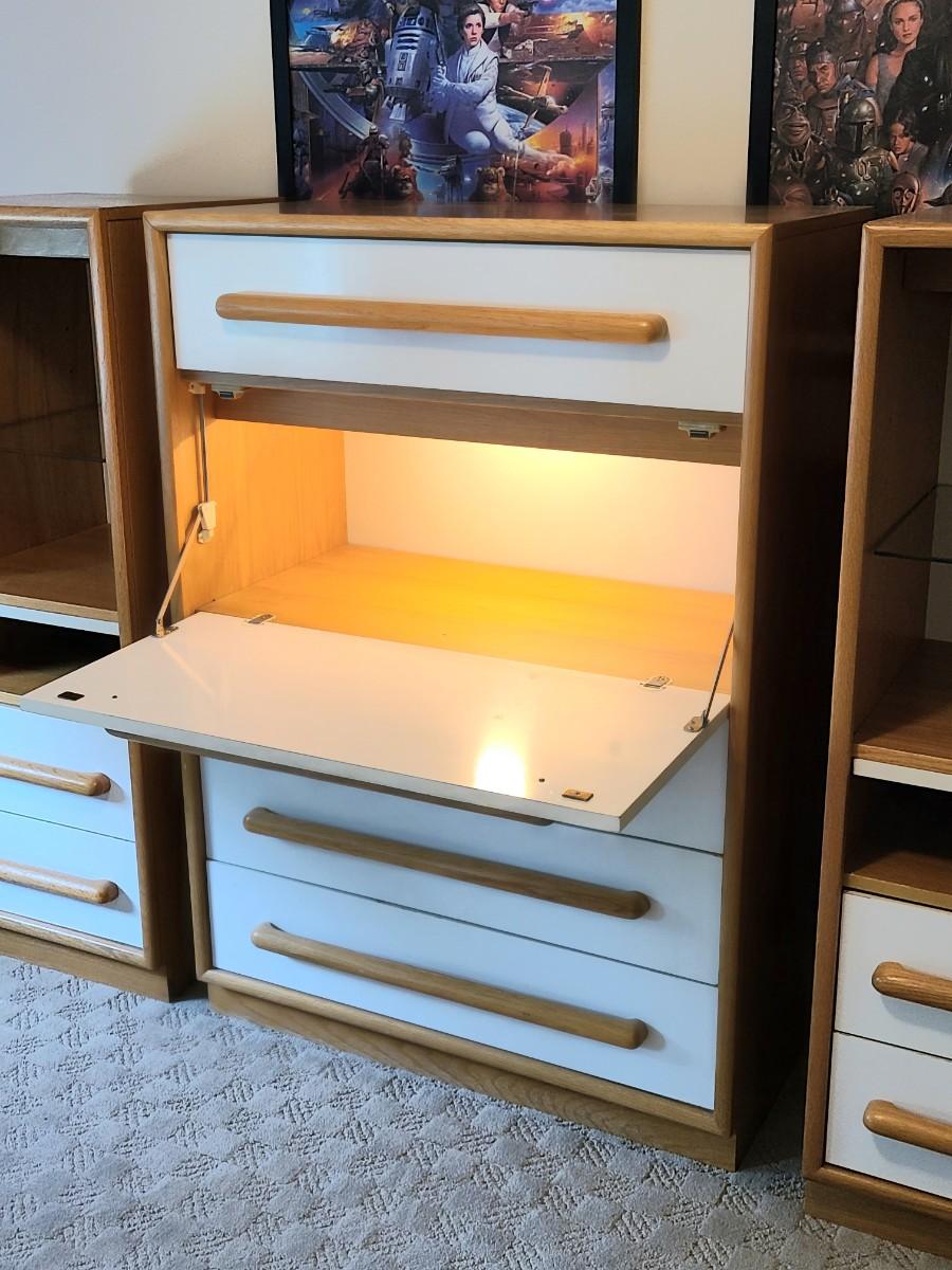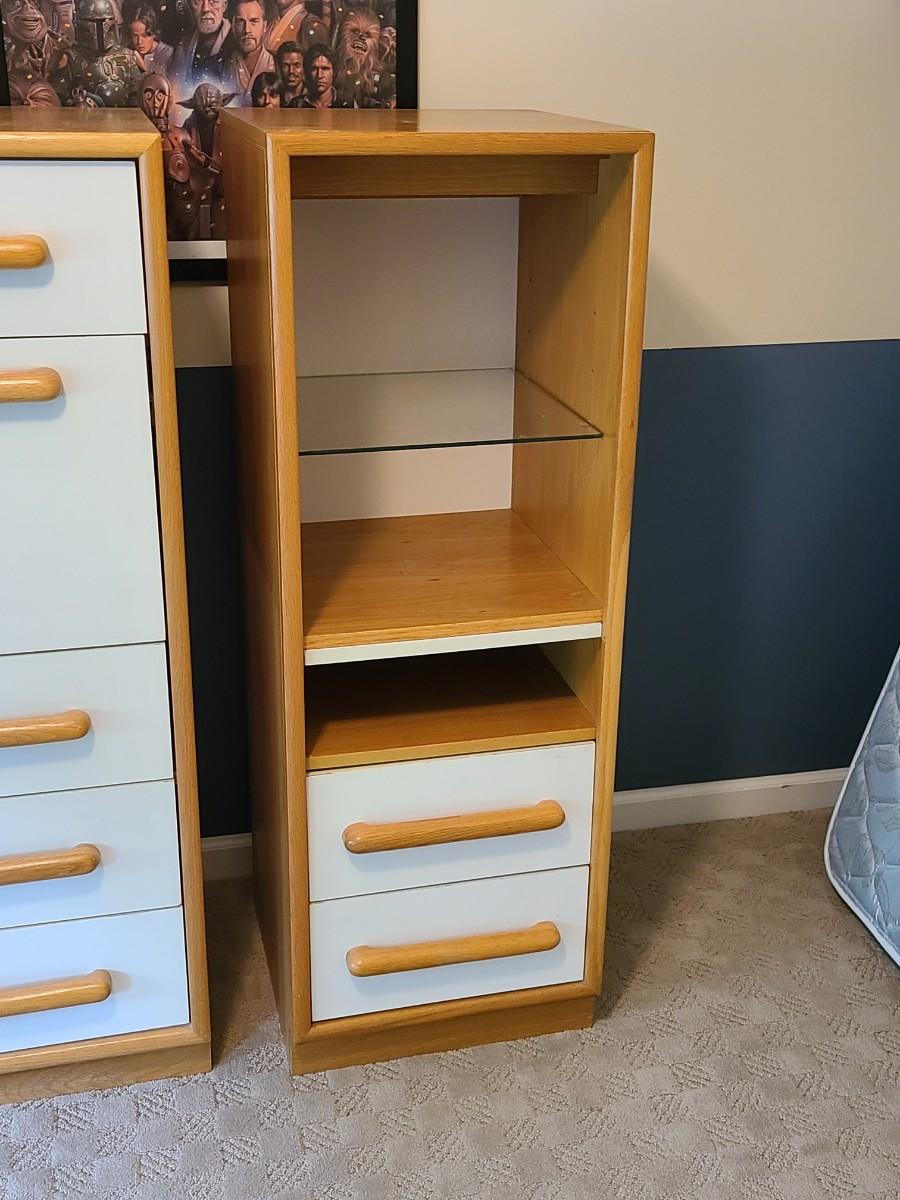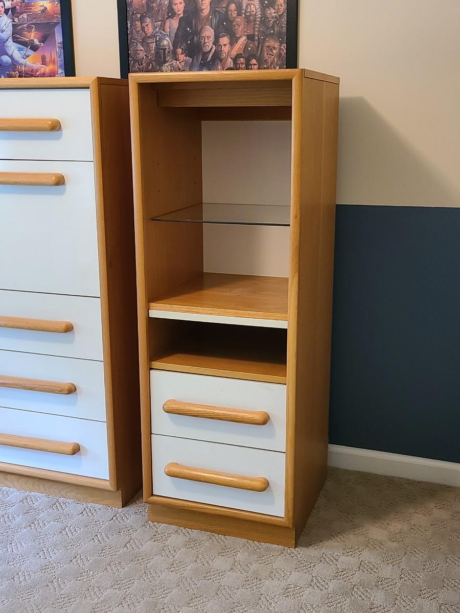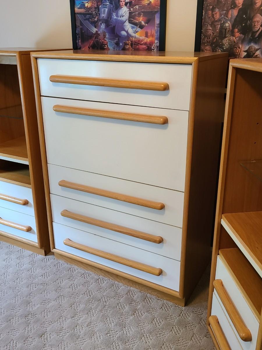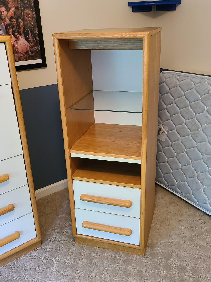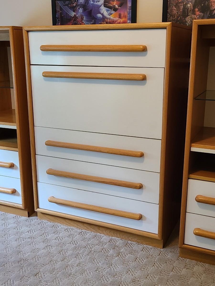 This set is solid and perfect for a bedroom or office space. Flip down lighted desk space and lighted bookshelves with drawers. Use in one room or three! Please see all pictures as they are the best representation of the items. The pictures show condition, measurements if taken, and what is included in the lot. Due to the large amount that we photograph and the time frame, we are not always able to take measurements. All items unless noted, are pre-owned and have been used. If you purchased furniture, you must bring help. We do not allow one person to carry large furniture out on their own. Bring help, tools and a truck for the safety of our client’s homes, and your personal safety. Any damages that result to the property including walls, and floors due to moving of the furniture will be charged to the buyer. Company policy. Thank you.