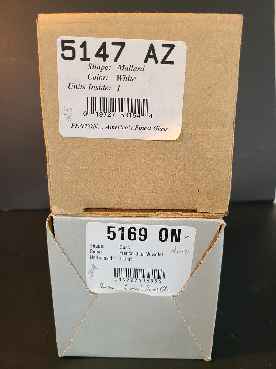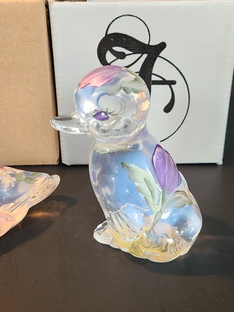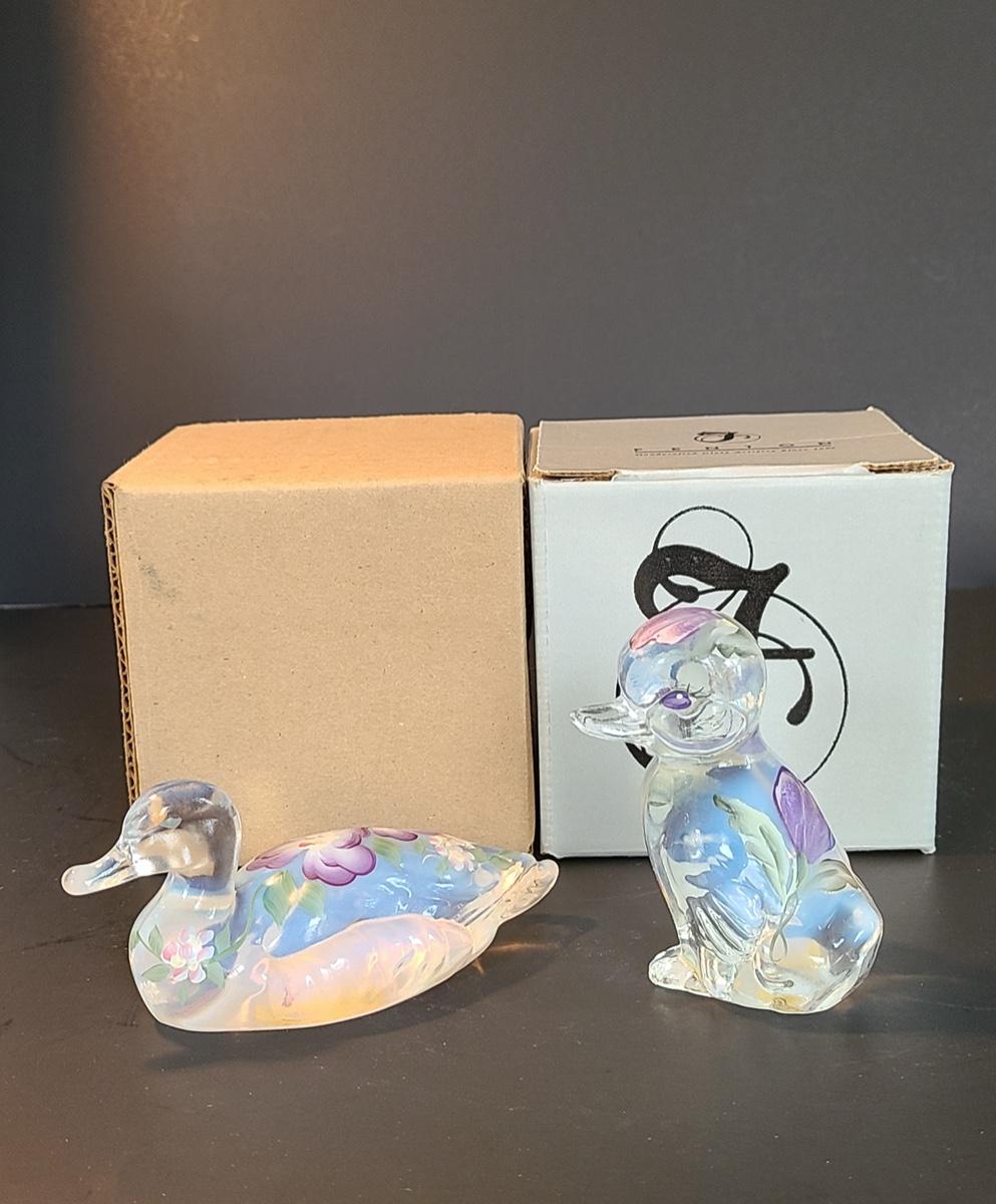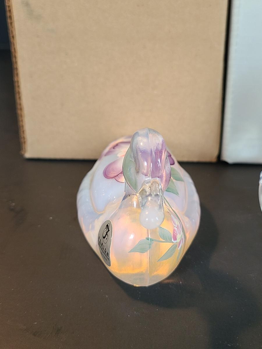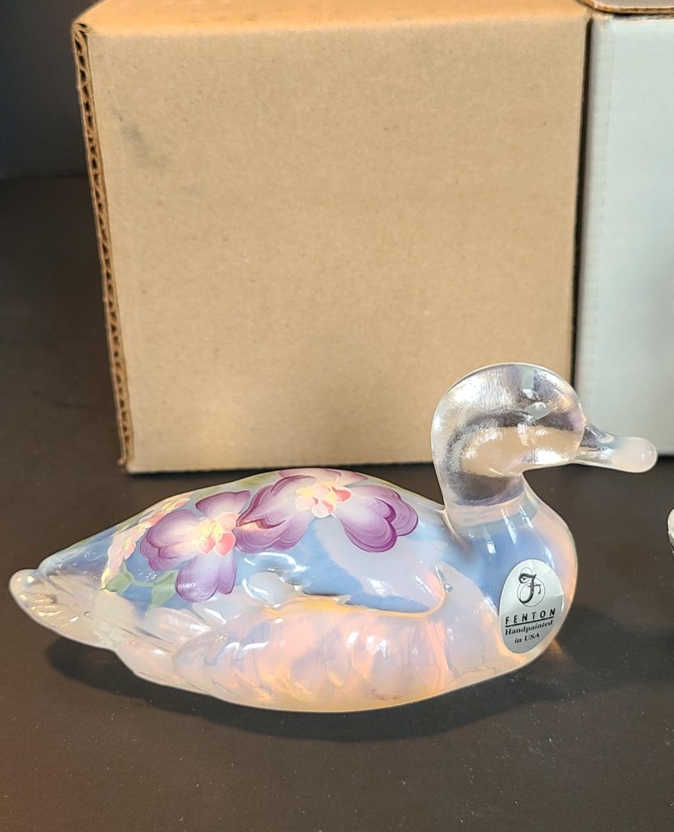 Lot 158: Fenton French Opal w/Violet Duck and Mallard