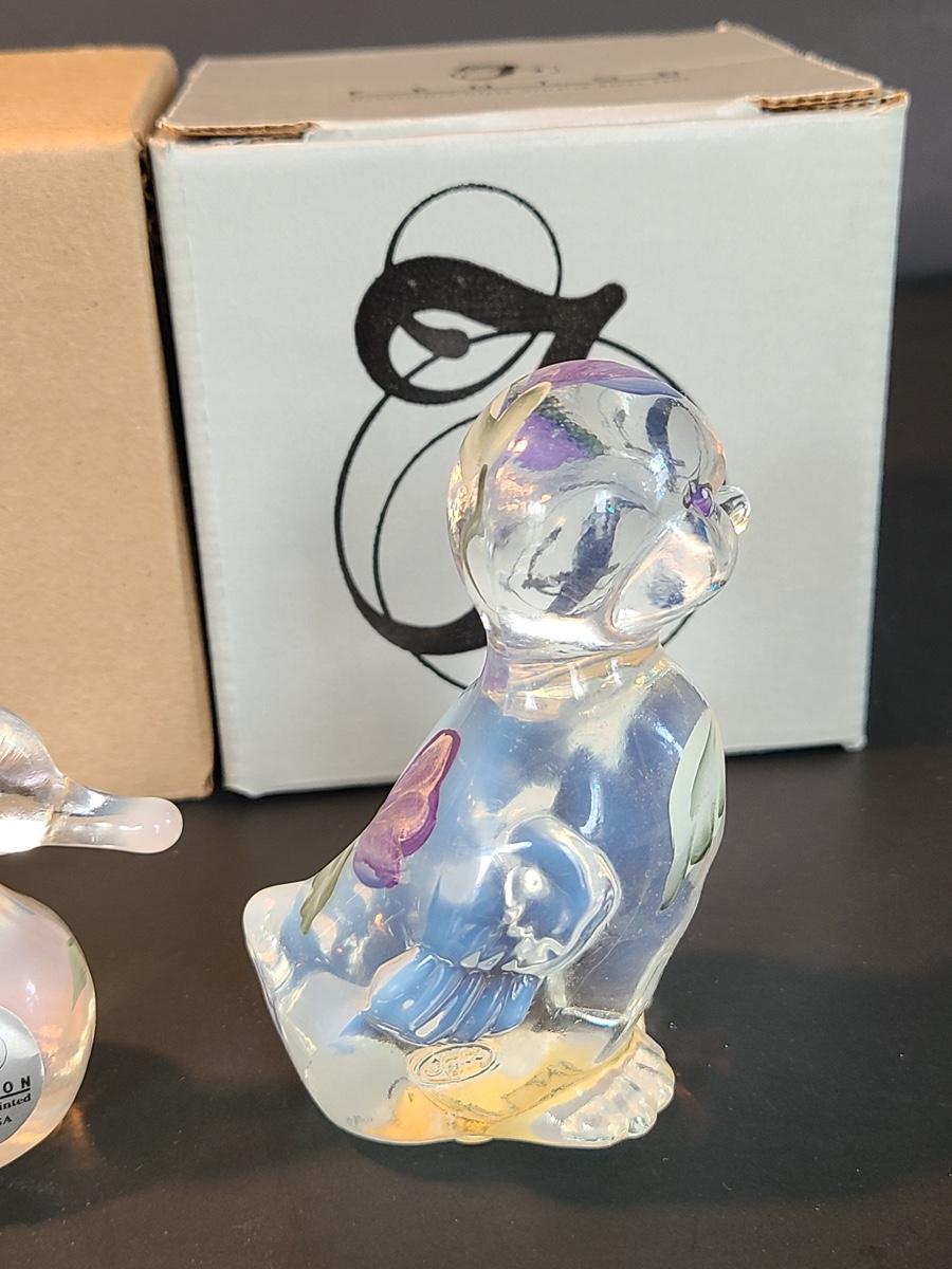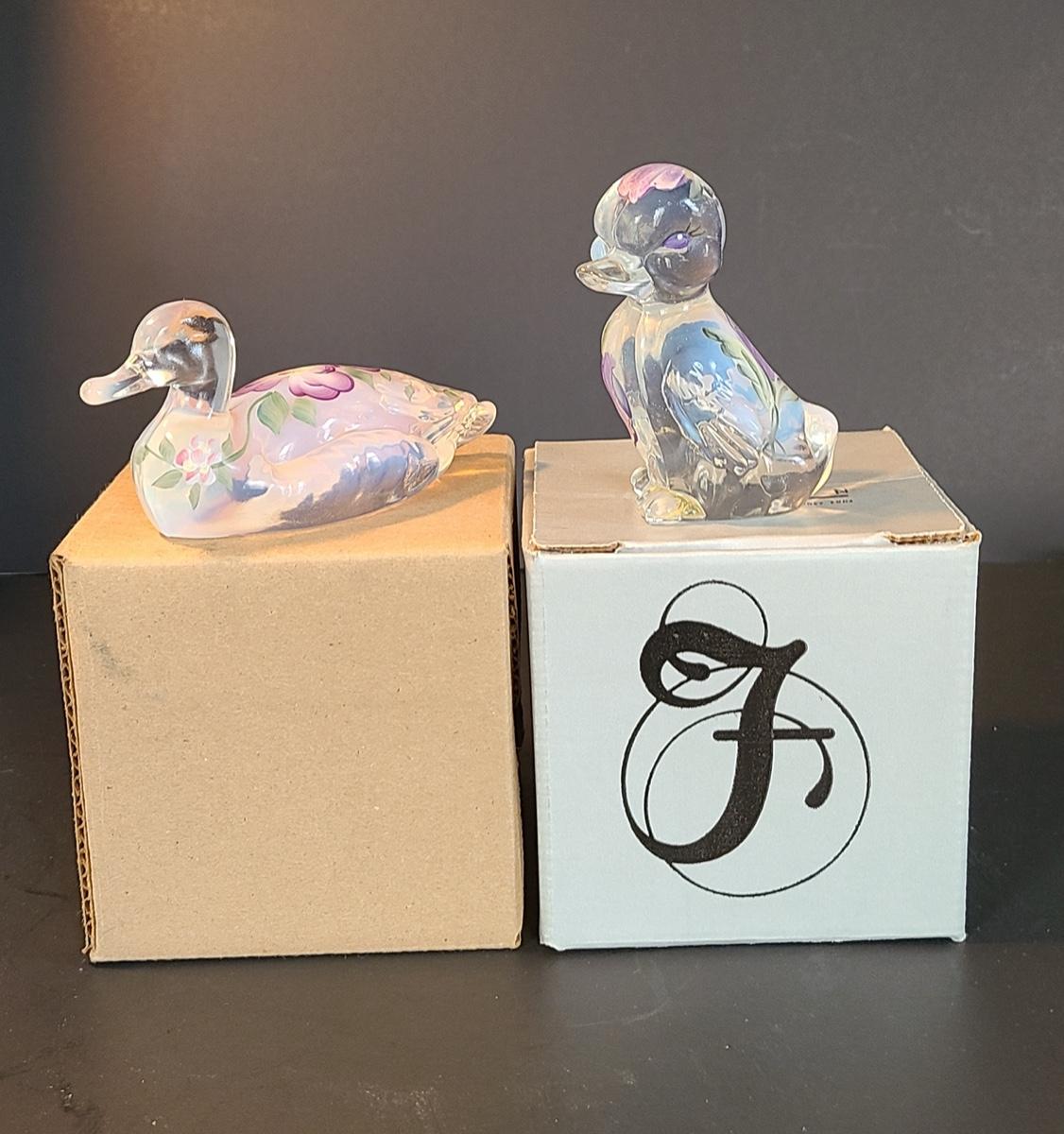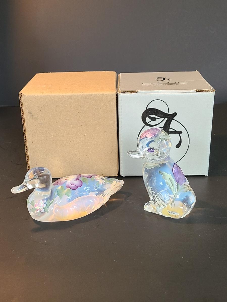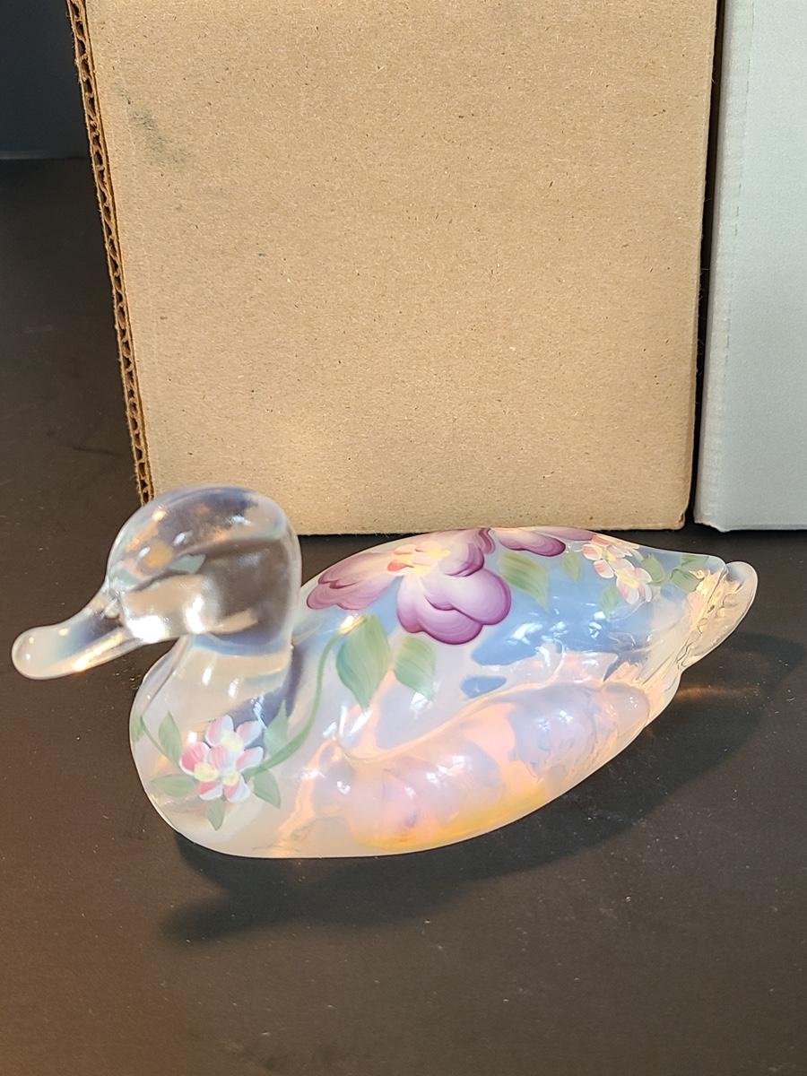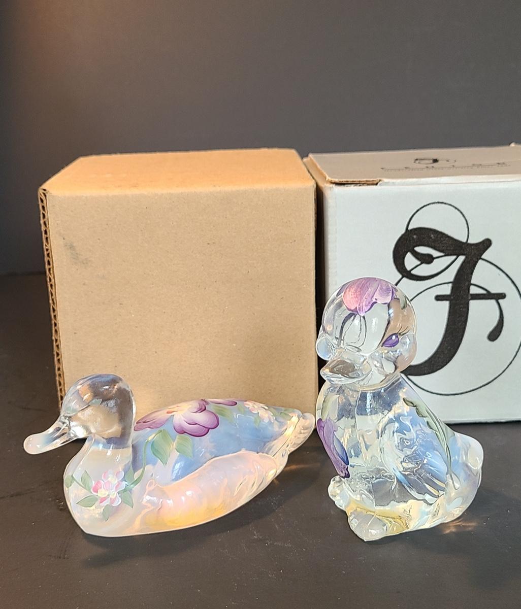 Lot 158: Fenton French Opal w/Violet Duck and Mallard