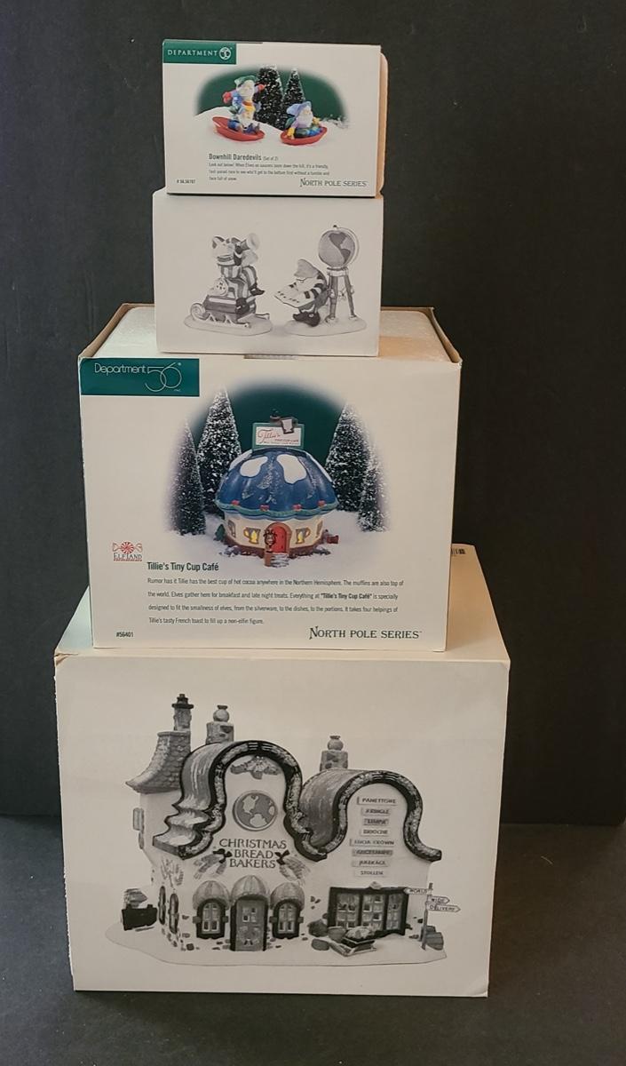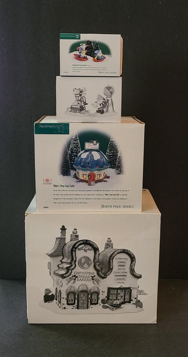 Lot 444: Dept 56: North Pole Series Christmas Bread Bakers and More