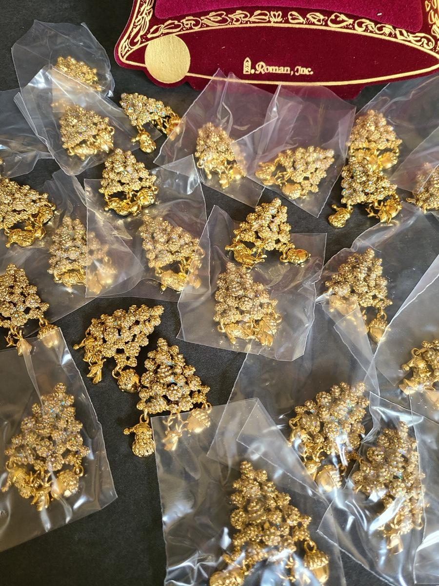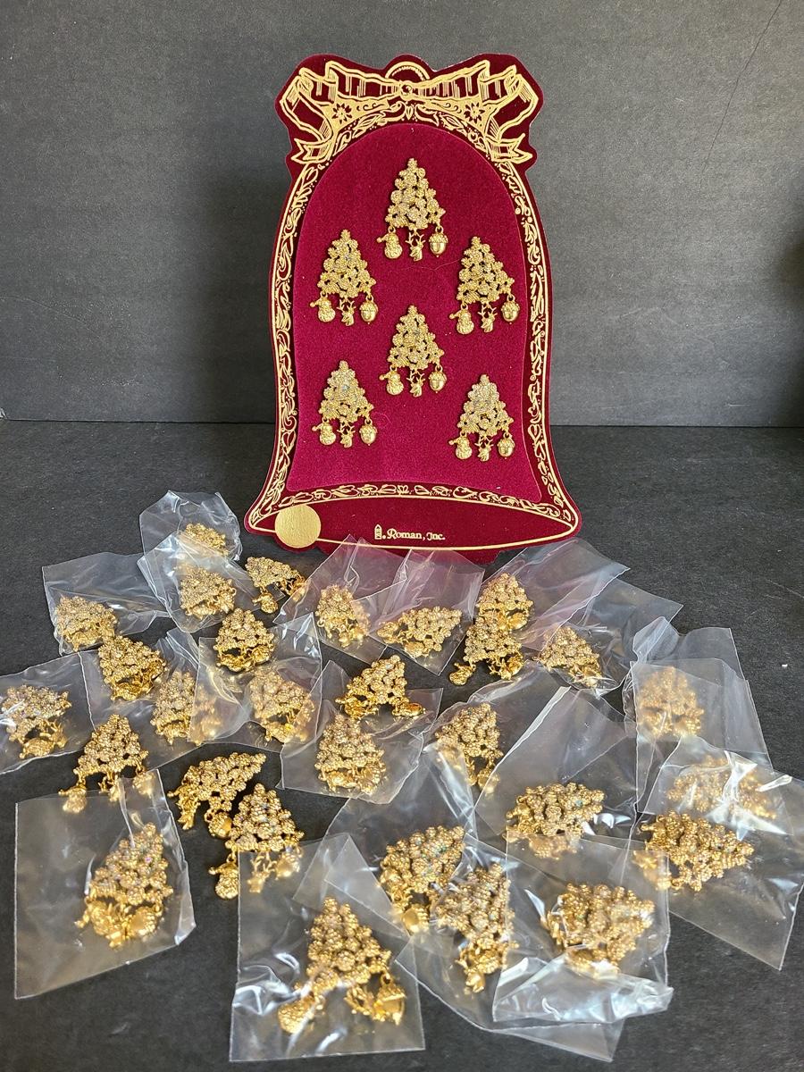 Lot 512: Roman Inc. Jewelry Brooch Display with Gold Tone Beaded Brooch Lot